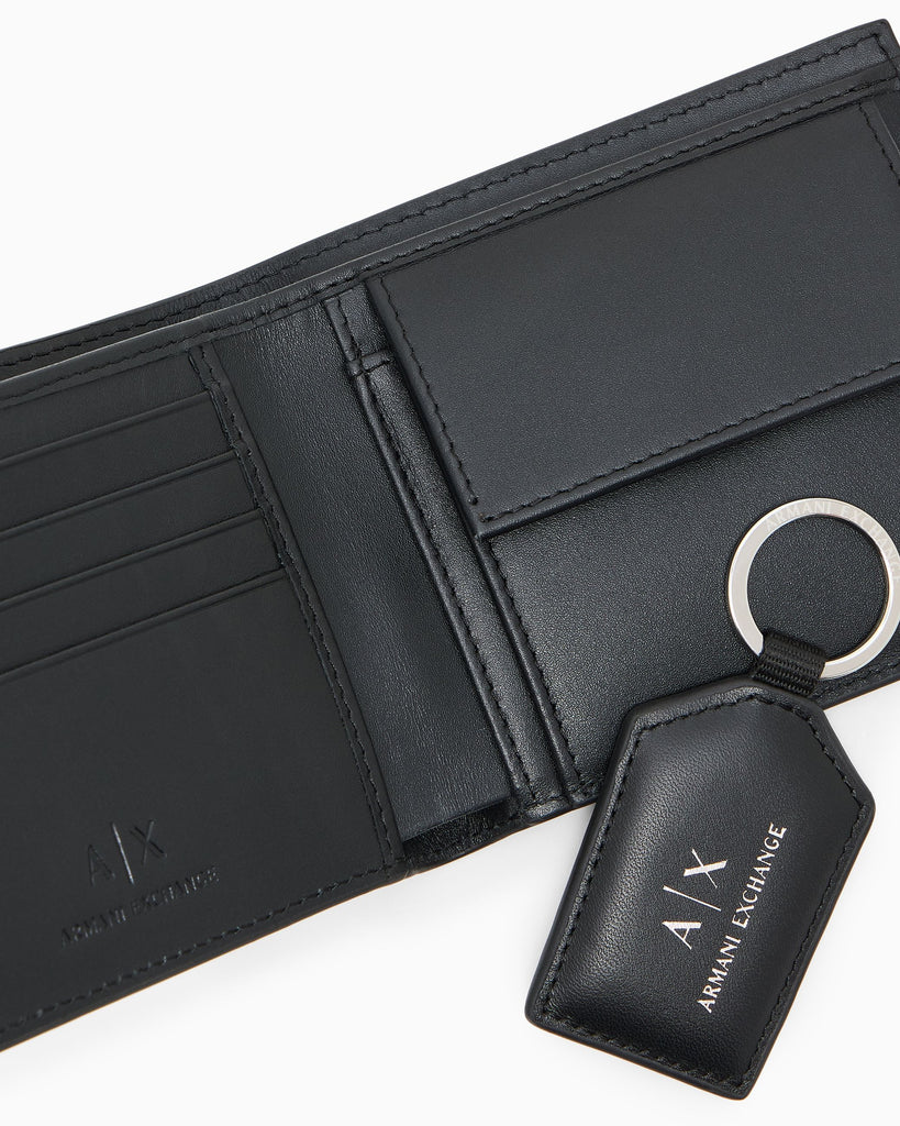 Set regalo uomo Armani Exchange in nero, composto da portafoglio e portachiavi coordinati. Una selezione curata di piccola pelletteria che unisce praticità e eleganza. Perfetto per chi apprezza gli accessori essenziali realizzati con cura e qualità. Ogni pezzo è confezionato con materiali pregiati che assicurano durabilità e stile duraturo. Un dono sofisticato che rispecchia il gusto raffinato di chi lo riceve, ideale per occasioni speciali.