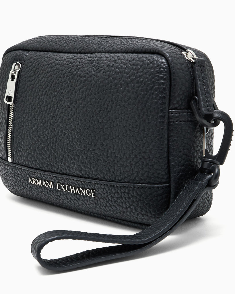 Pochette da uomo Armani Exchange in nero con manico pratico e elegante. Formato compatto e maneggevole, perfetto per trasportare essenziali con stile. Ideale per serate, viaggi o uso quotidiano quando si preferisce leggerezza e praticità. Realizzata con materiali raffinati che garantiscono solidità e longevità. Un accessorio versatile che aggiunge un tocco di sofisticatezza a qualsiasi occasione, mantenendo un profilo discreto e contemporaneo.