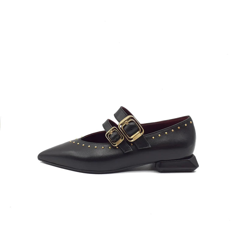 Le ballerine a punta GIGLIO 12 di Lorenzo Mari uniscono eleganza e carattere con dettagli raffinati come fibbie e borchie. Realizzate in nero classico, queste scarpe da donna offrono un design sofisticato ideale per chi cerca stile e comfort in ogni occasione, conferendo un tocco deciso e moderno al look.