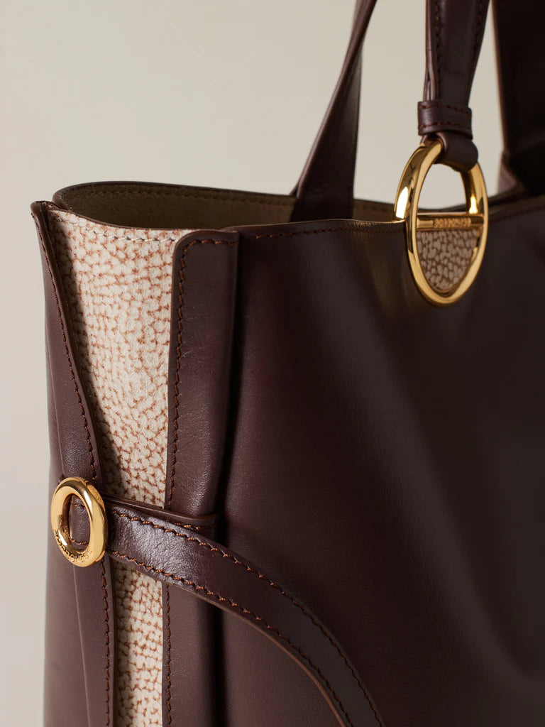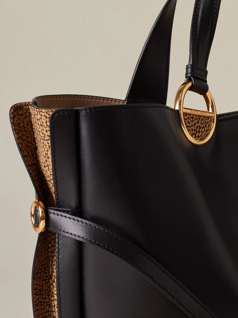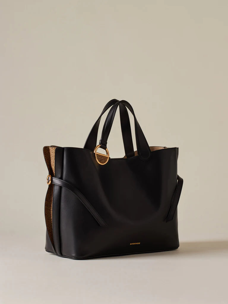 Questa shopping bag da donna Borbonese in pelle unisce stile e funzionalità. Il design elegante, arricchito dalla tracolla inclusa, offre versatilità per ogni occasione. Il colore naturale/nero rende la borsa un accessorio raffinato, perfetto per completare un look sofisticato con praticità.