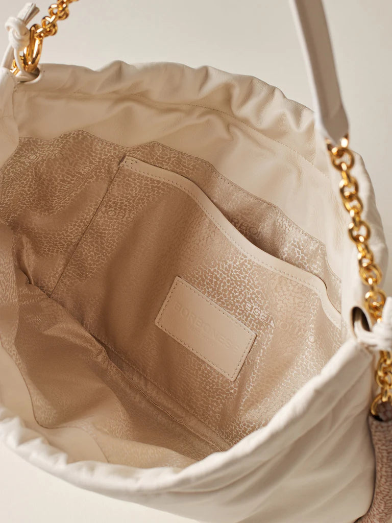 La borsa a spalla da donna Borbonese, realizzata in pelle color crema, rappresenta la perfetta sintesi tra eleganza e funzionalità. Il design essenziale esalta la qualità dei materiali, offrendo un accessorio raffinato e versatile, ideale per completare con classe ogni look femminile. Un investimento di stile per chi apprezza la manifattura italiana di alto livello.