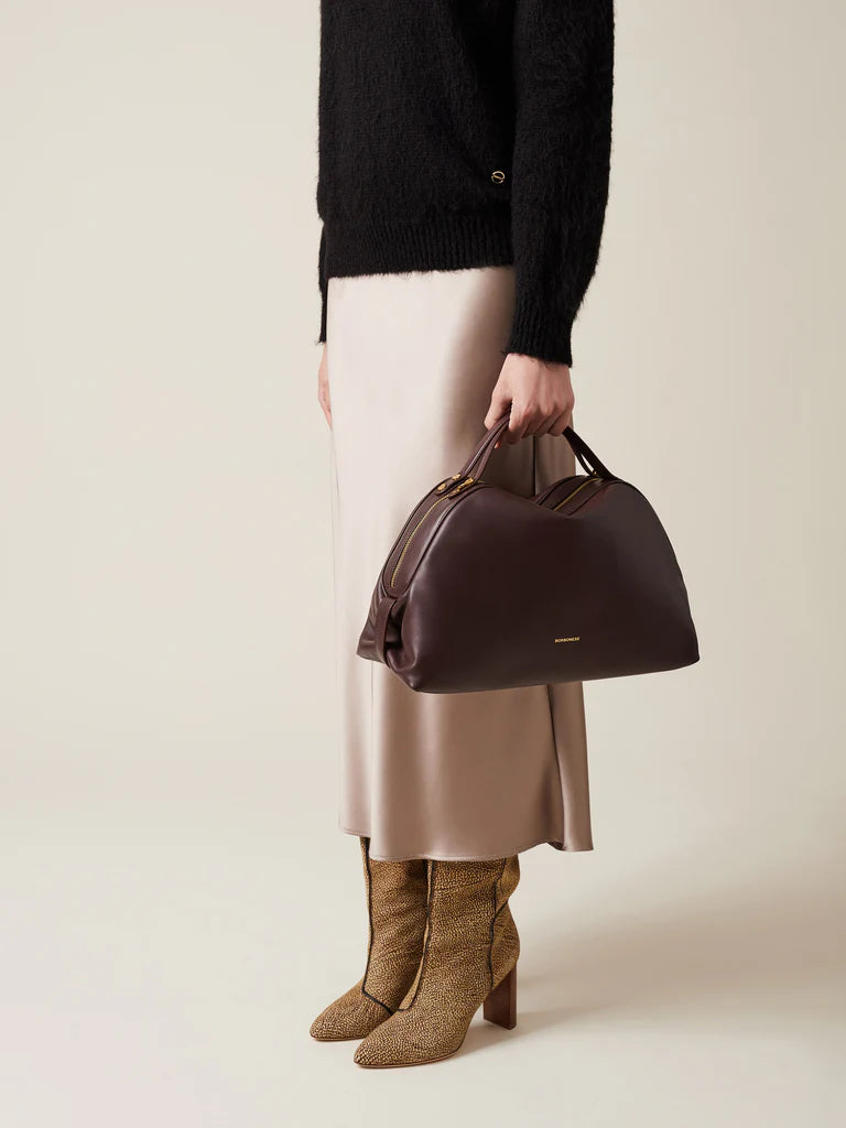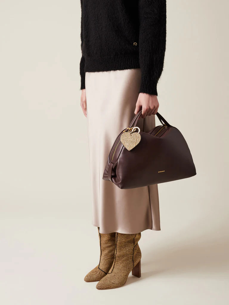 Questa borsa a mano da donna Borbonese, realizzata in pelle pregiata nei toni castano e nero, si distingue per la sua eleganza senza tempo. Completa di tracolla inclusa, offre versatilità d’uso e un design raffinato, ideale per accompagnare con classe ogni momento della giornata.