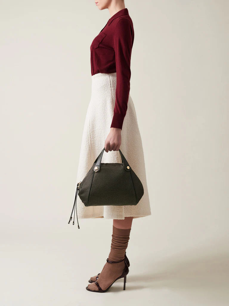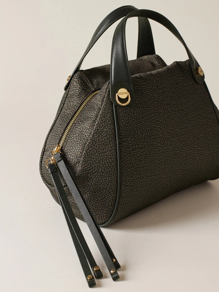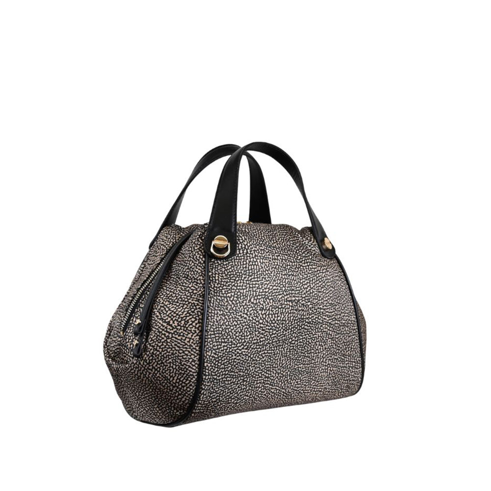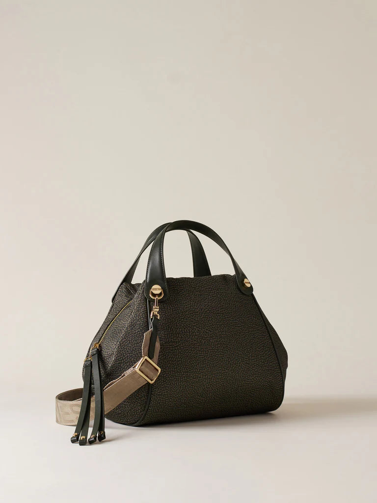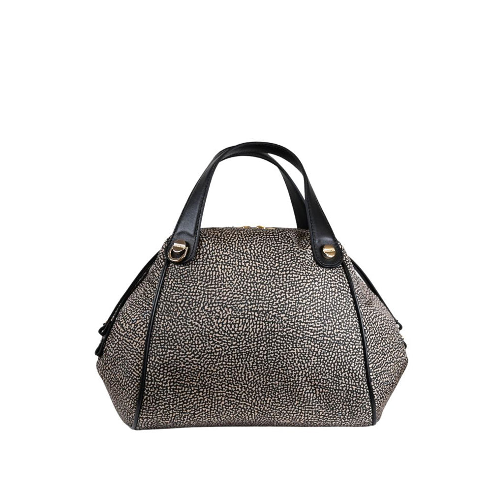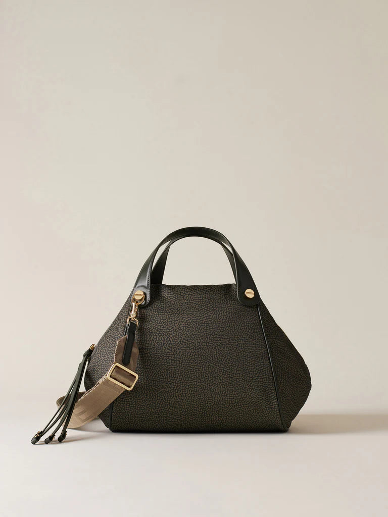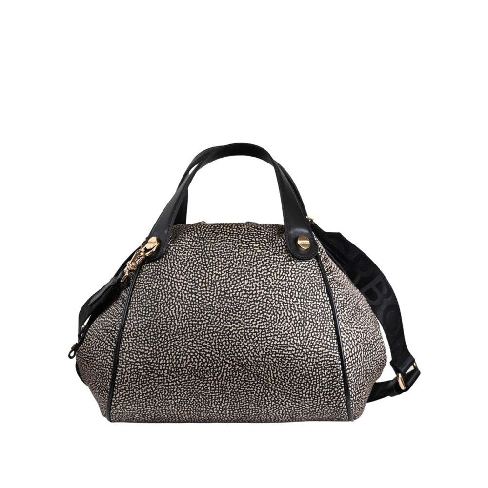 Il bauletto medio da donna Borbonese, disponibile nei raffinati colori naturale/nero, nero e verde, unisce un design elegante a una funzionalità studiata. Perfetto per chi cerca un accessorio versatile e sofisticato, si adatta con classe a molteplici occasioni, garantendo stile e praticità.
