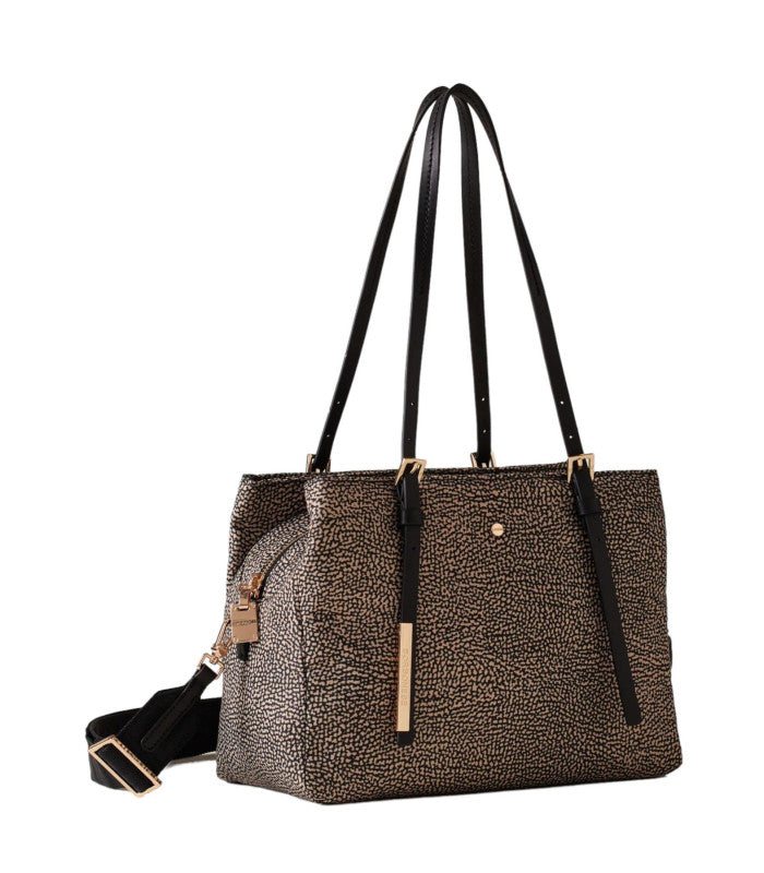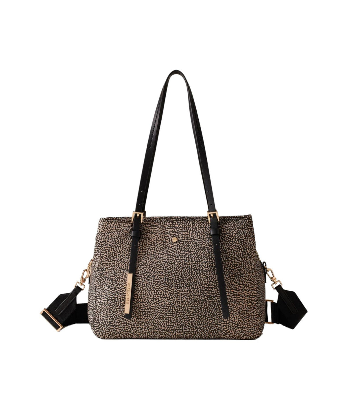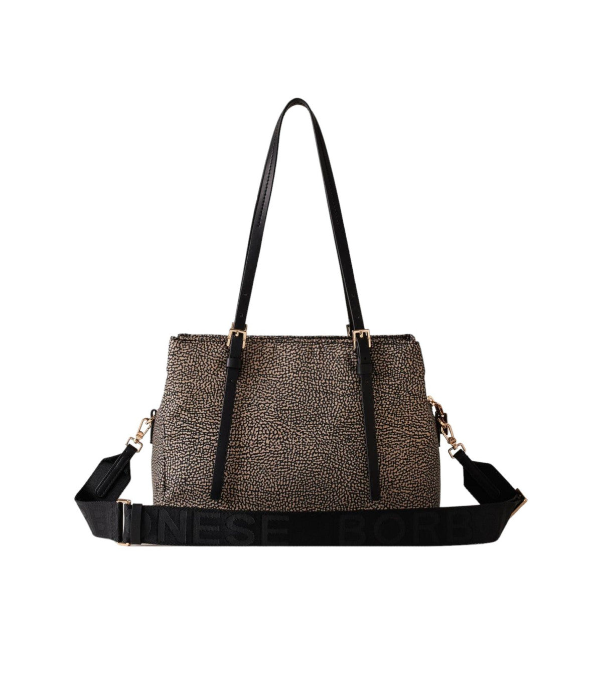 La shopping bag media da donna Borbonese 933777AH1 si distingue per il suo design elegante nei toni naturale e nero. Perfetta per chi cerca un accessorio raffinato e funzionale, offre spazio sufficiente senza rinunciare alla leggerezza e alla versatilità, completando con classe ogni look quotidiano.