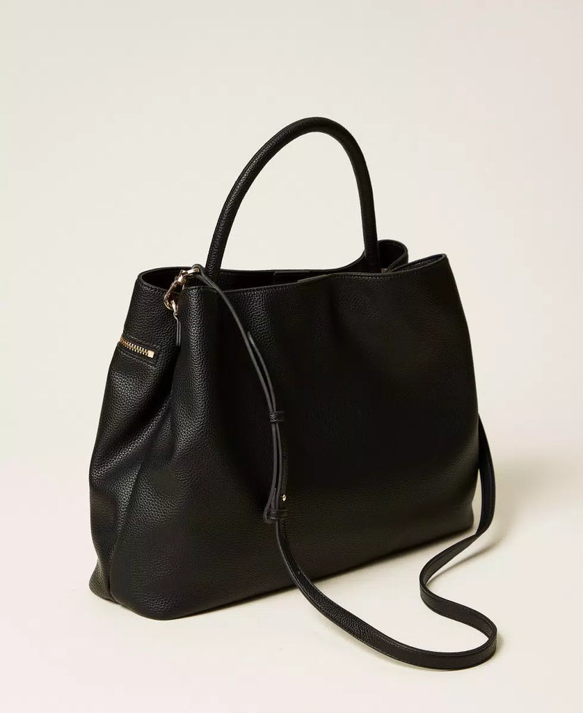 La borsa a mano modello tote da donna Twinset, proposta in elegante nero, unisce funzionalità e raffinatezza. Dotata di tracolla inclusa, offre versatilità nell’uso quotidiano senza compromessi sullo stile, rendendola l’accessorio ideale per chi desidera un design sofisticato e pratico.
