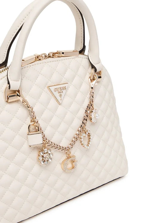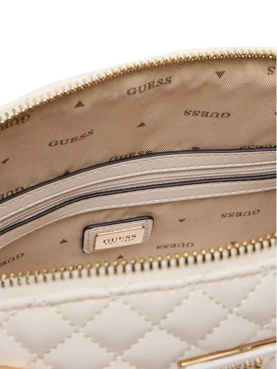 Borsa a mano trapuntata da donna Guess in elegante color panna, che unisce stile raffinato e design contemporaneo. Completa di tracolla inclusa per un trasporto versatile, questa borsa combina funzionalità e classe, diventando un accessorio sofisticato perfetto per ogni occasione.
