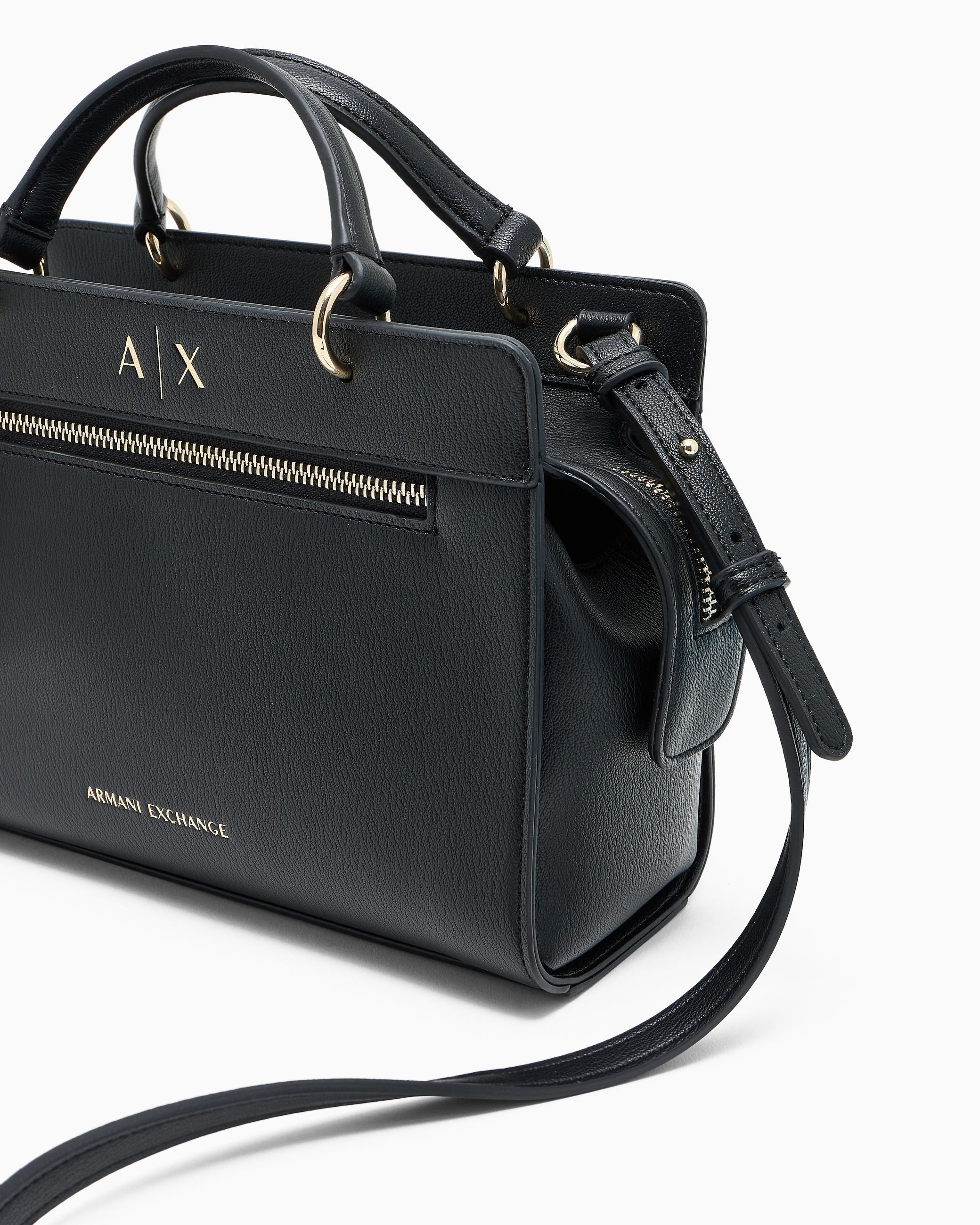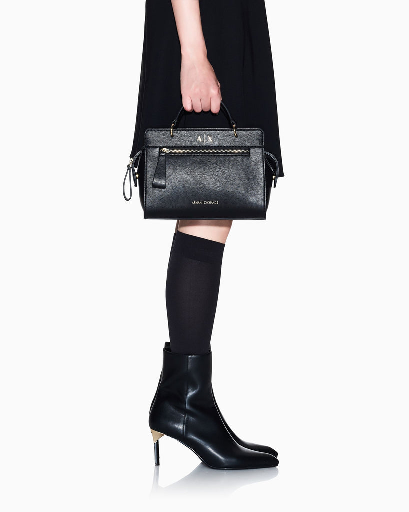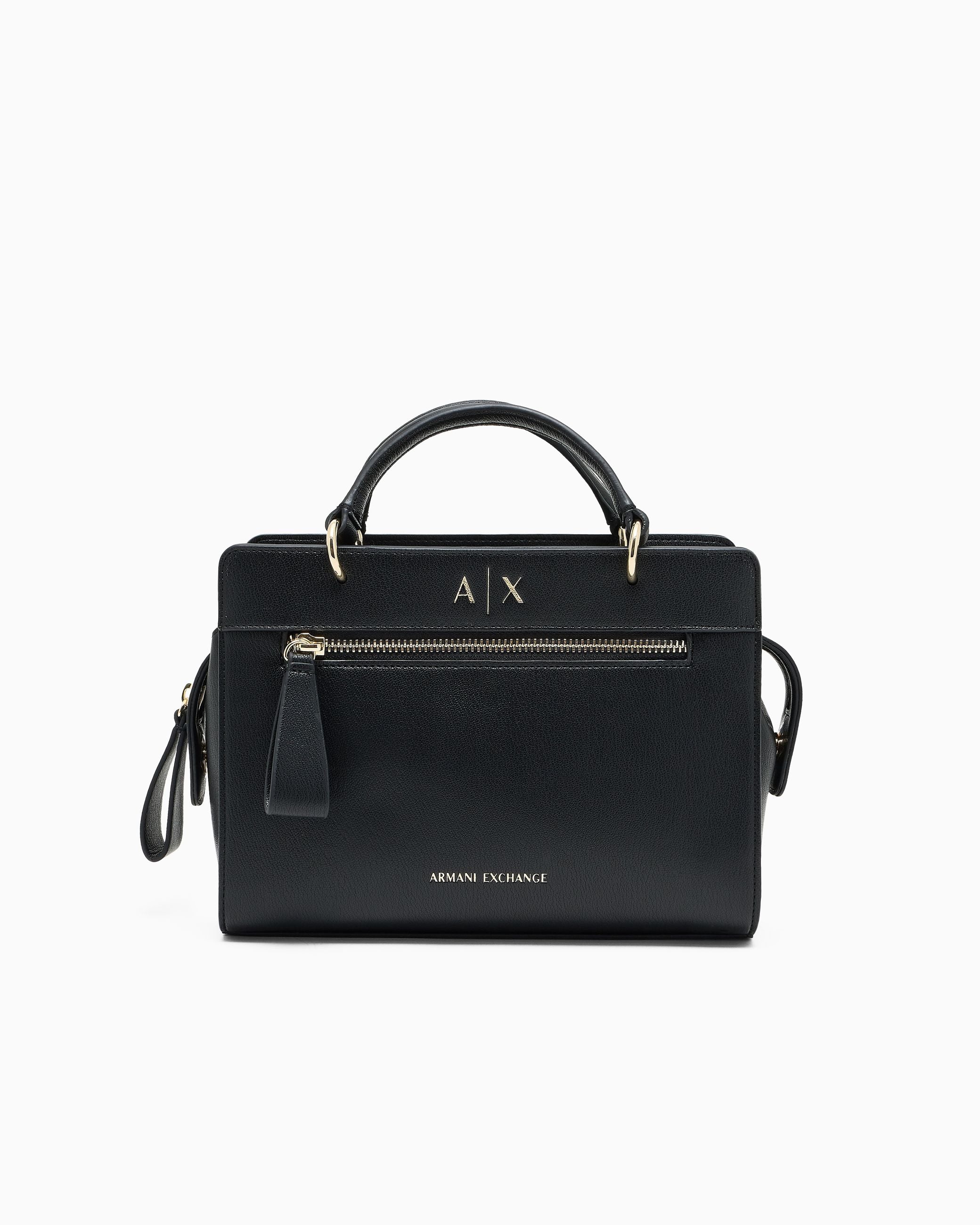 Borsa a mano Armani Exchange in nero, un capolavoro di eleganza e funzionalità per la donna esigente. Completa di tracolla inclusa, offre versatilità di portabilità adattandosi a ogni momento della giornata. La tasca frontale aggiunge praticità senza compromettere l'estetica raffinata del design. Realizzata con materiali pregiati, questa creazione del marchio Armani Exchange incarna la sofisticazione italiana, perfetta per chi ricerca un accessorio che unisce bellezza senza tempo, qualità costruttiva e utilità quotidiana in un'unica soluzione di stile.