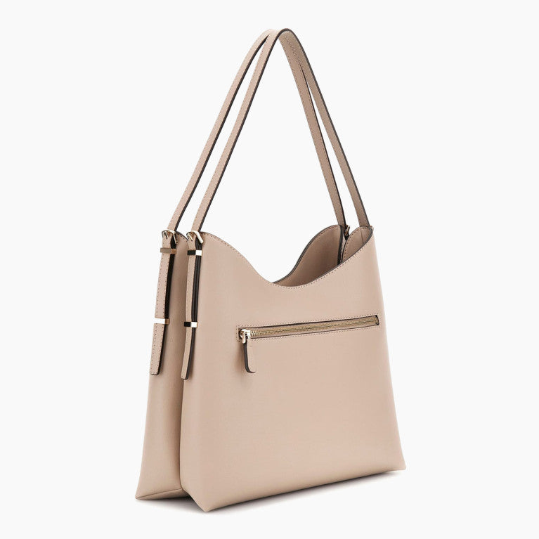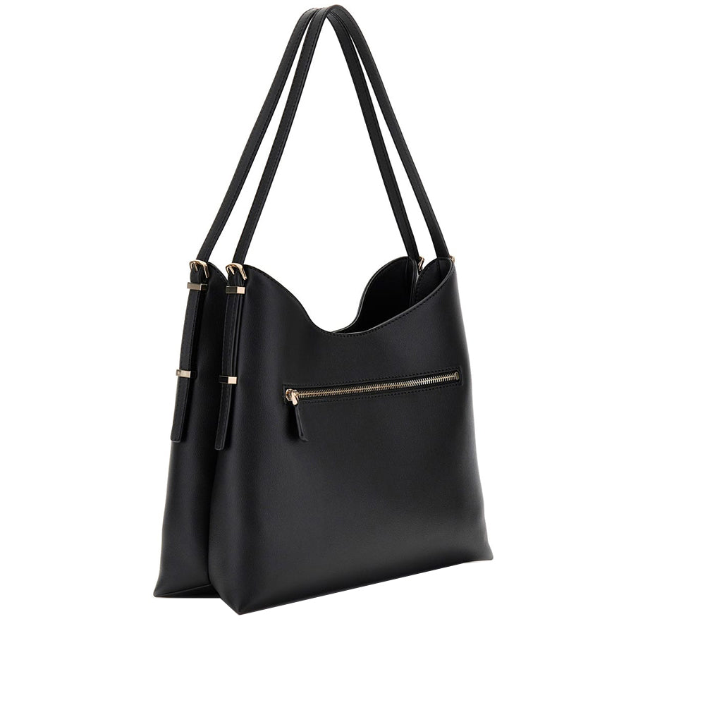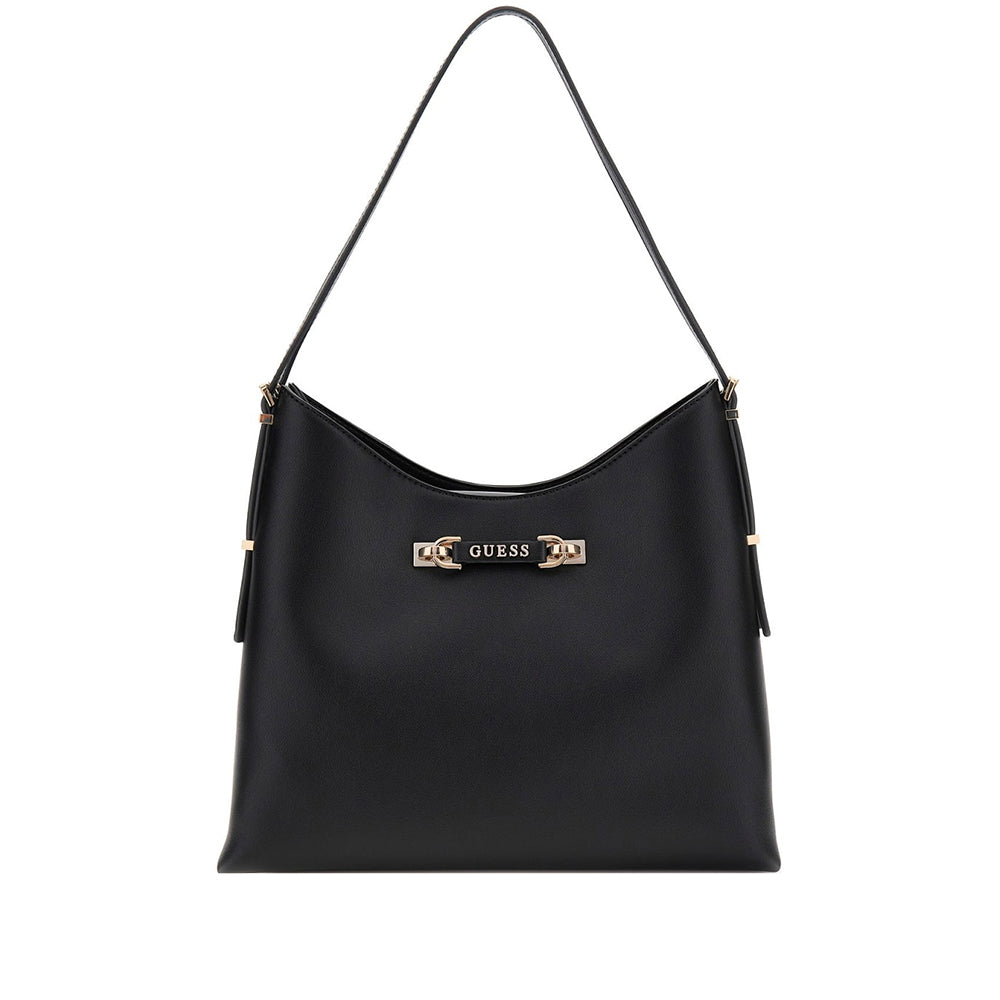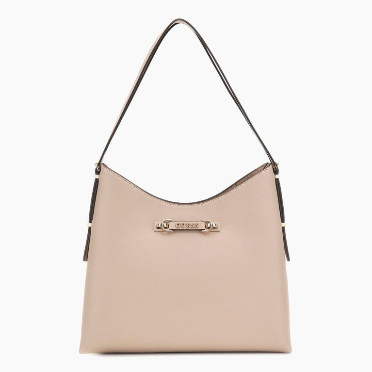 Borsa a spalla modello hobo da donna Guess nei sofisticati colori nero e tortora, che unisce un design elegante a una silhouette morbida e pratica. Perfetta per chi cerca uno stile sofisticato con un tocco di comodità, questa borsa è ideale per accompagnarti con classe in ogni occasione.