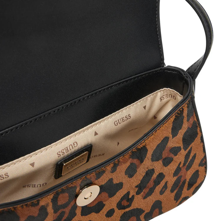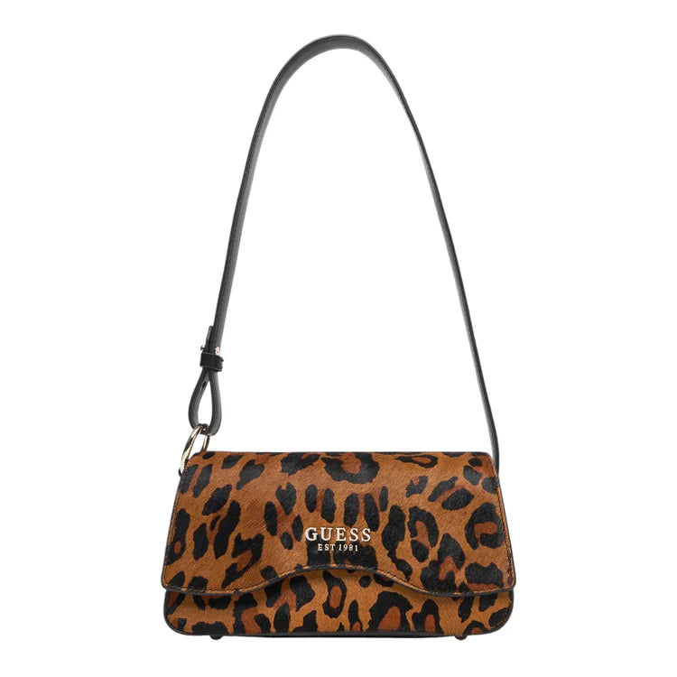 Borsa a spalla da donna Guess della linea Domitilla con affascinante stampa leopardata. La tracolla regolabile garantisce praticità, mentre i materiali pregiati e il design elegante la rendono perfetta per chi desidera un accessorio che unisca stile contemporaneo e funzionalità quotidiana.