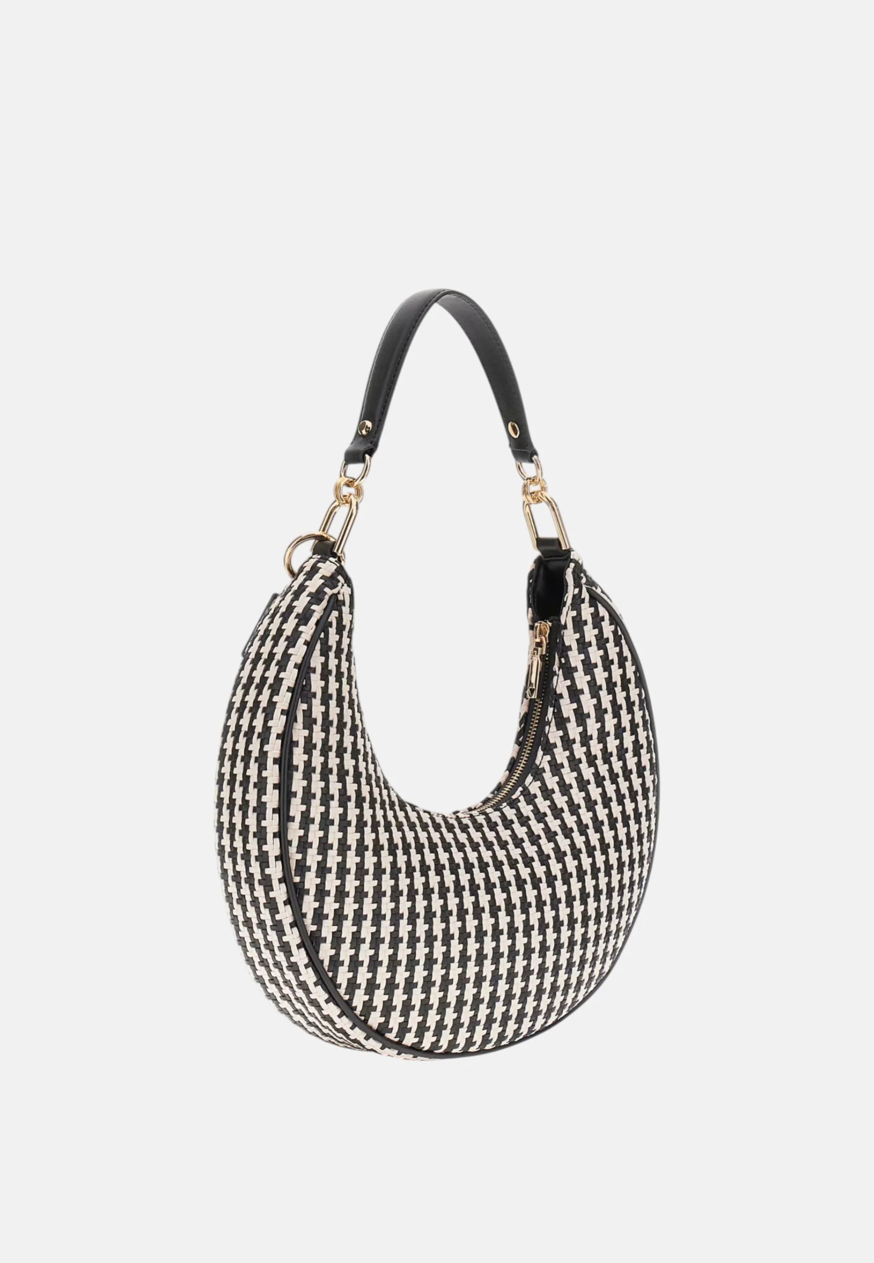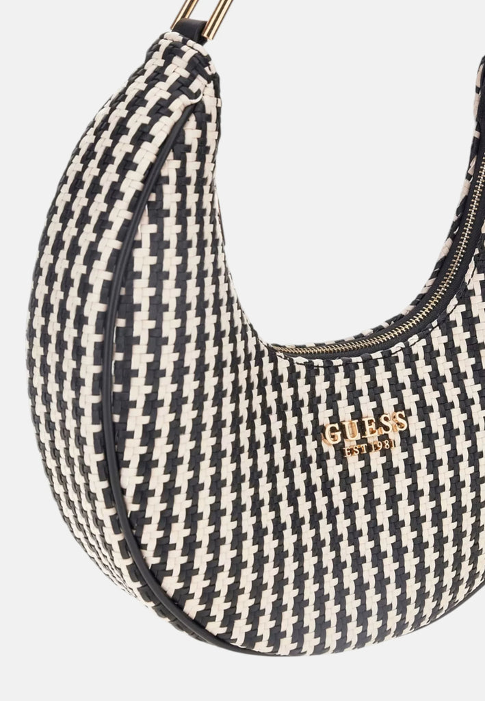 La borsa a spalla modello hobo da donna Guess HWWG9631020 si distingue per la sua silhouette morbida e avvolgente, valorizzata dai contrasti eleganti dei colori nero e bianco. Un accessorio sofisticato e versatile, perfetto per chi cerca stile e comodità senza compromessi.