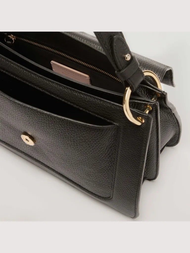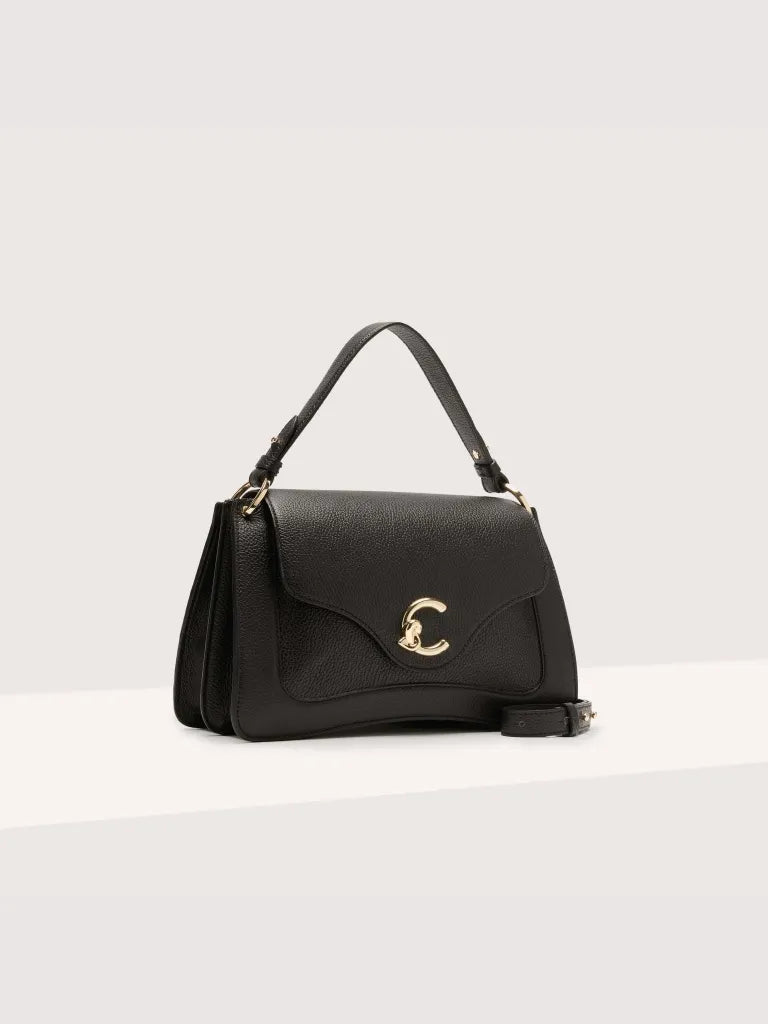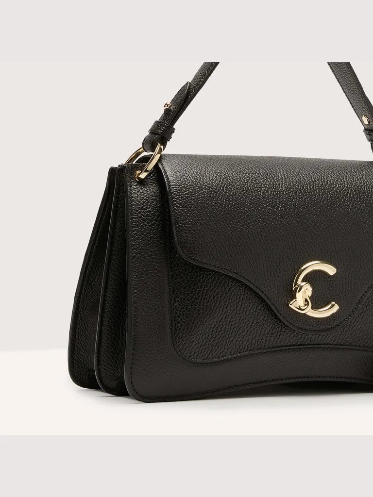 Borsa a mano in pelle nera da donna firmata Coccinelle, un accessorio che coniuga eleganza e funzionalità. Il design pulito e raffinato rende questa borsa ideale per completare ogni look con stile sobrio e sofisticato, perfetta per l’uso quotidiano o per occasioni speciali.