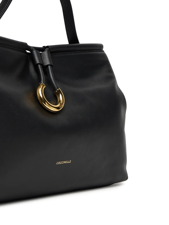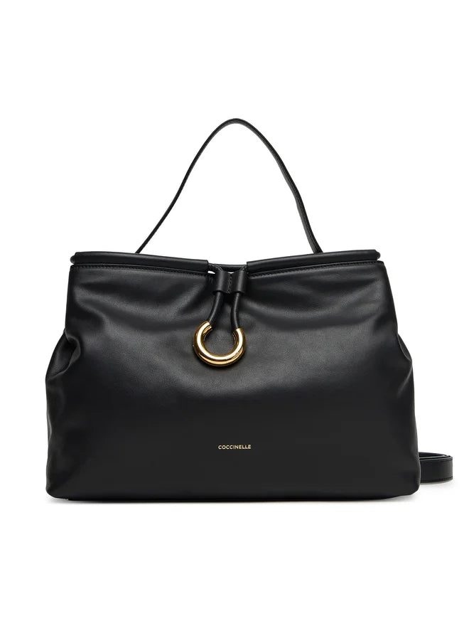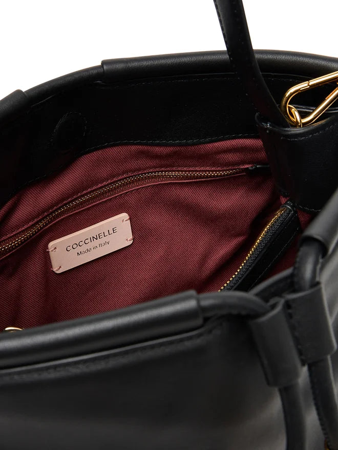 Borsa a mano in pelle nera da donna firmata Coccinelle, completa di tracolla inclusa per una versatilità d’uso senza pari. Questo accessorio unisce un design elegante e linee raffinate a materiali di alta qualità, perfetto per esaltare con classe ogni outfit, dal giorno alla sera.