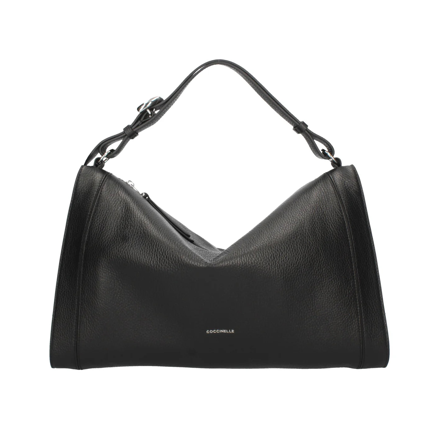 Borsa a spalla in pelle nera da donna firmata Coccinelle, che unisce design elegante e materiali di alta qualità. Perfetta per chi cerca un accessorio sofisticato e versatile, capace di completare con raffinata semplicità ogni look quotidiano.