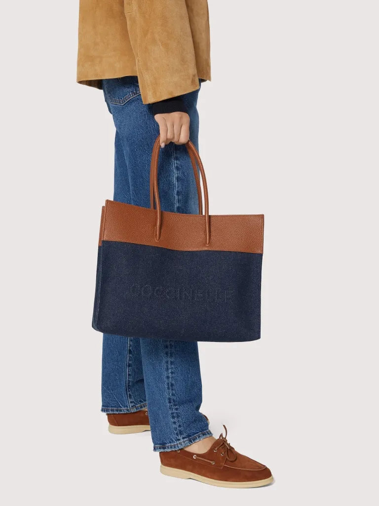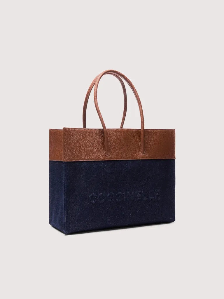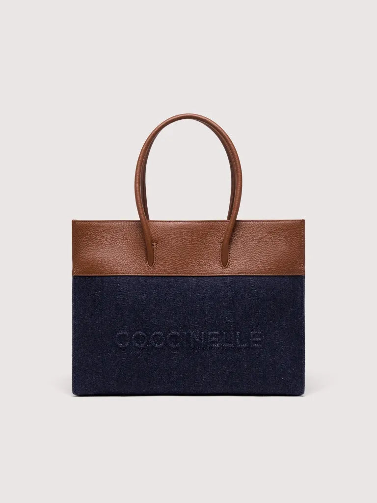 Shopping bag da donna firmata Coccinelle, proposta in una elegante combinazione di colori denim e cognac. Questo accessorio unisce stile raffinato e funzionalità, offrendo ampio spazio e versatilità per accompagnare con classe ogni momento della giornata.