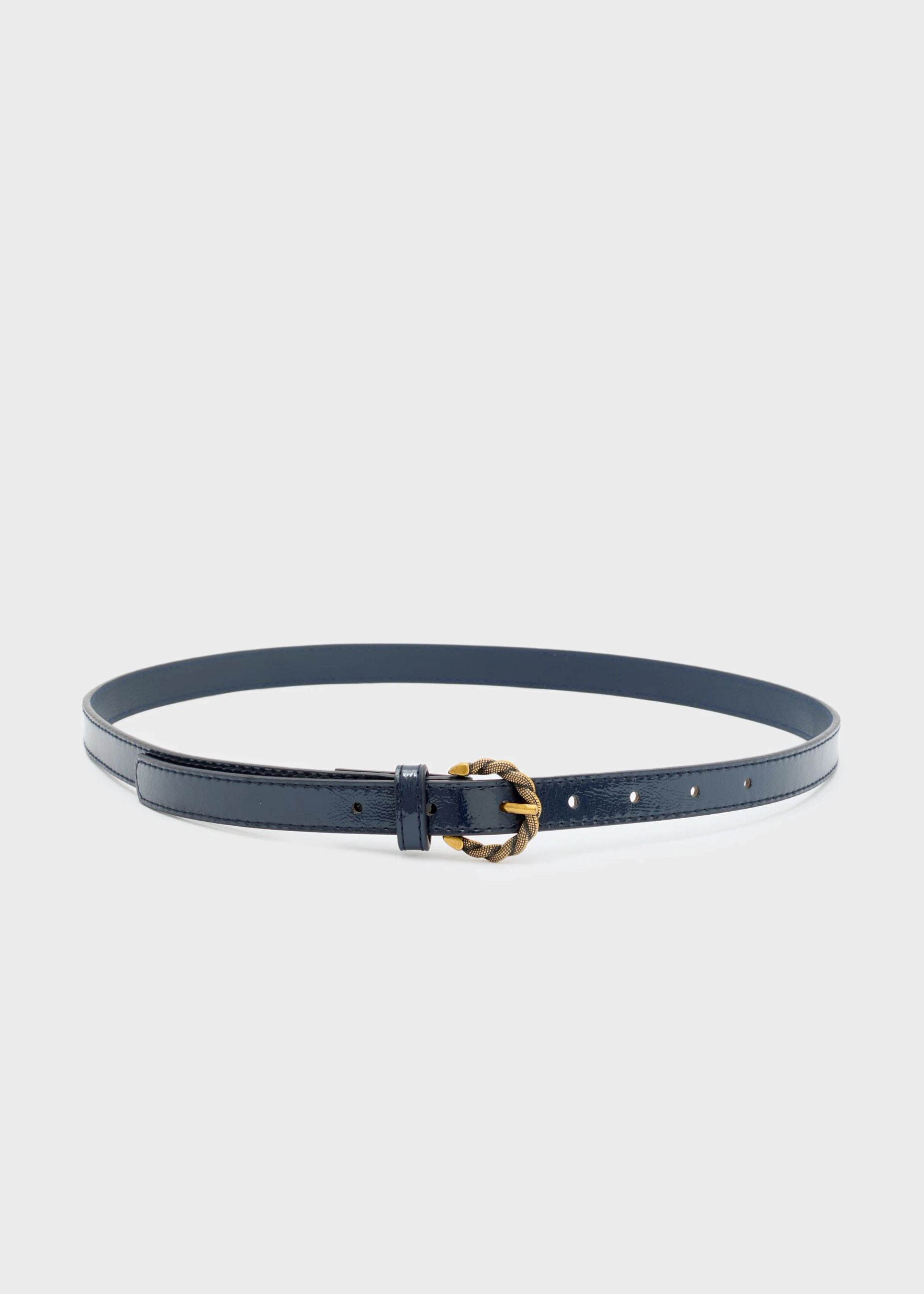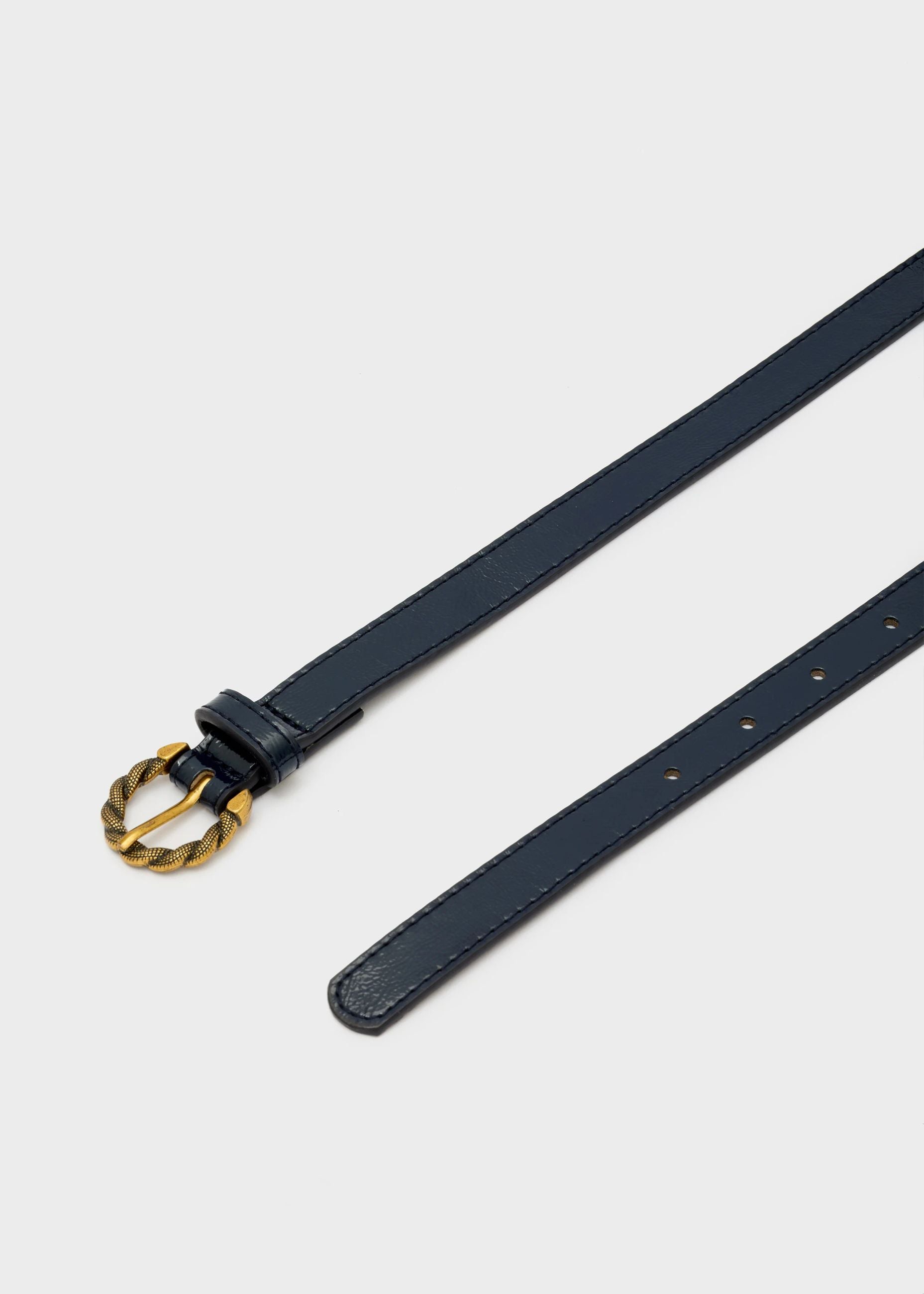 La cintura donna Nalì della linea Rio, con finitura lucida blu e fibbia dorata, rappresenta l’equilibrio perfetto tra eleganza e modernità. Questo accessorio raffinato arricchisce ogni outfit con un tocco di classe e originalità distintiva.