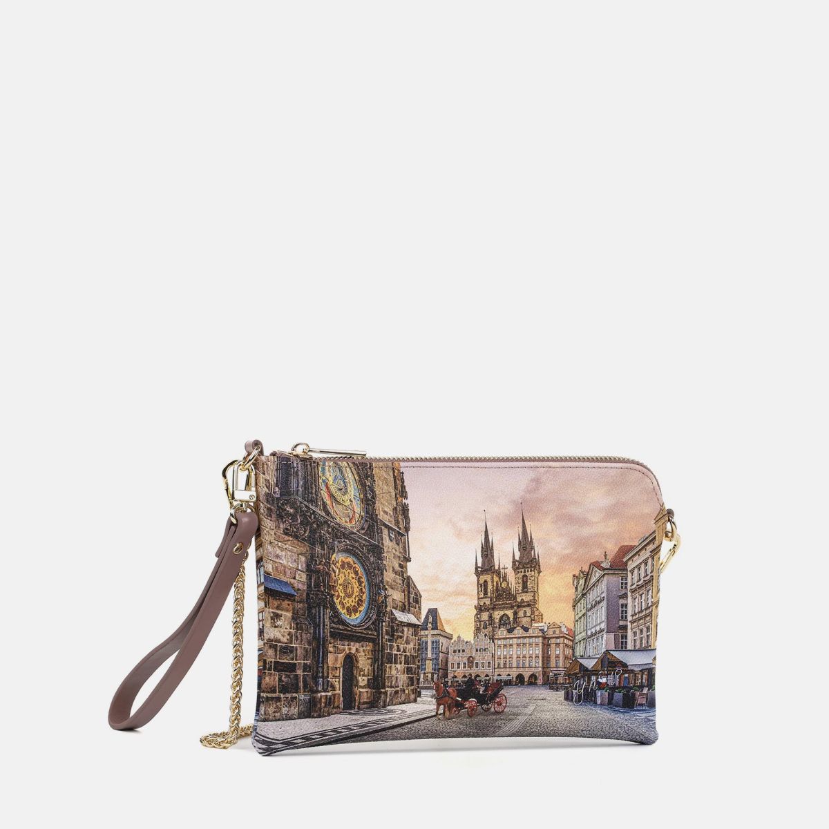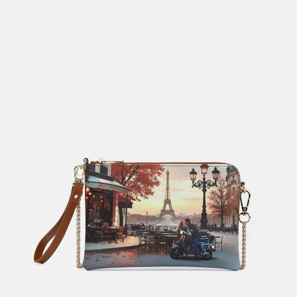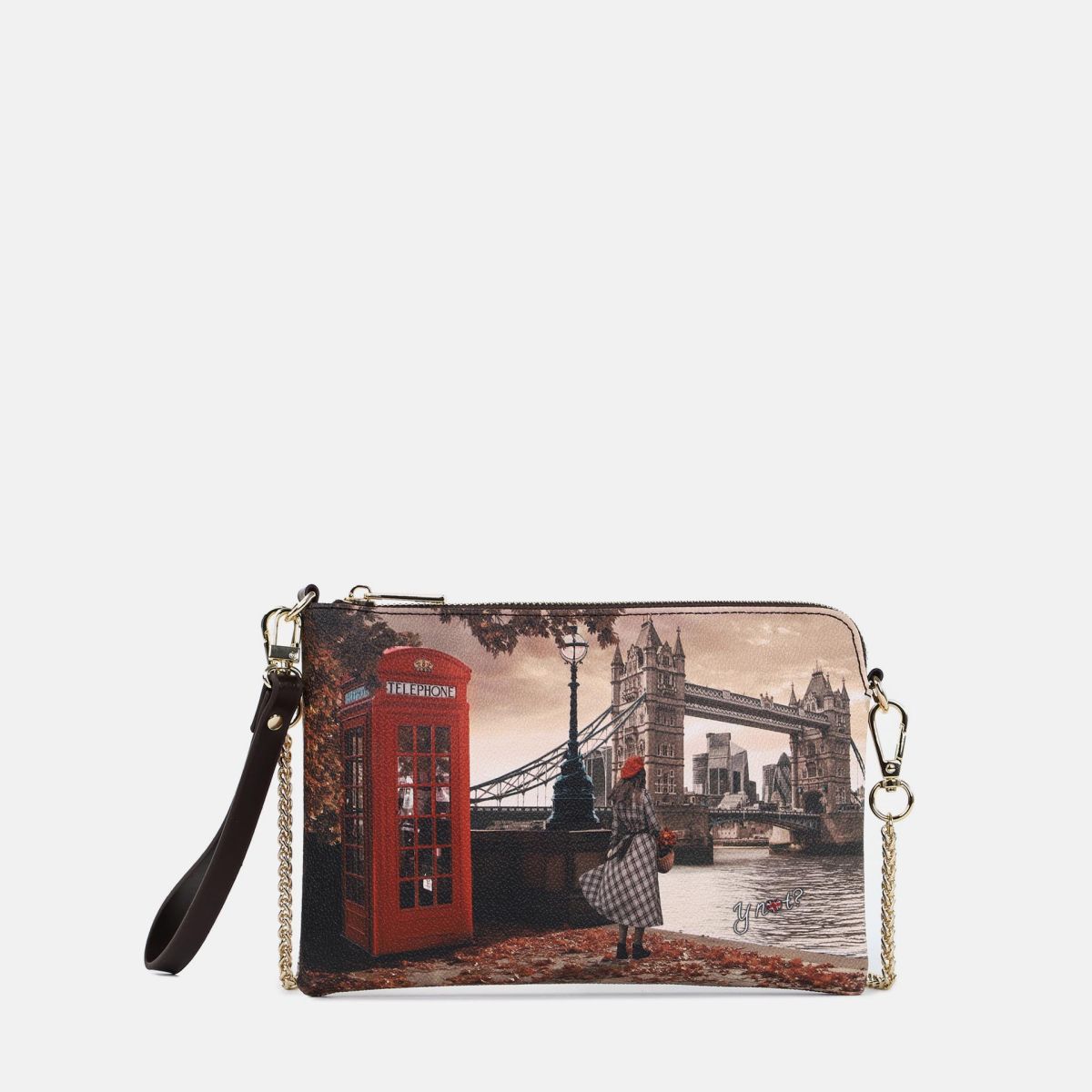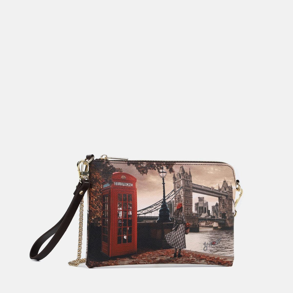 La clutch da donna Ynot? modello YES384F6, impreziosita da eleganti stampe come Amsterdam Bridge, Astro Clock, Jubilee, Kisses from Paris, Fall in Alberobello e London Bridge, è dotata di manico e tracolla a catena, che uniscono praticità e stile raffinato. Un accessorio sofisticato, ideale per completare con classe ogni outfit.