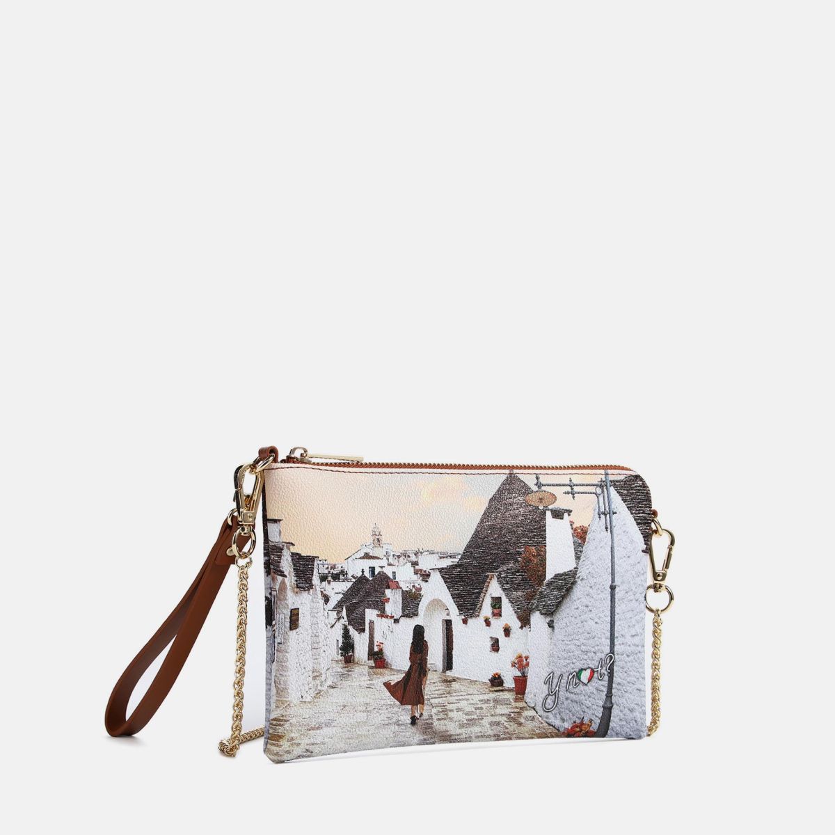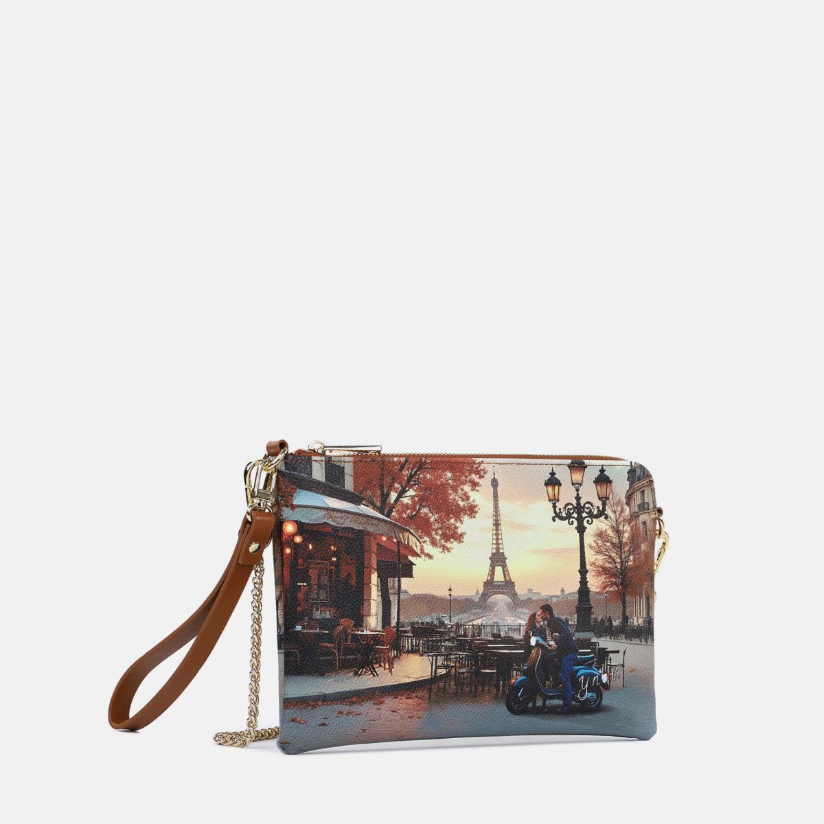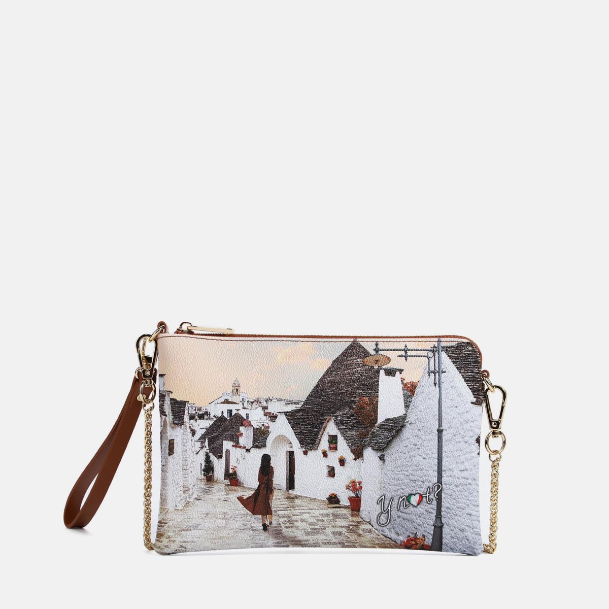 La clutch da donna Ynot? modello YES384F6, impreziosita da eleganti stampe come Amsterdam Bridge, Astro Clock, Jubilee, Kisses from Paris, Fall in Alberobello e London Bridge, è dotata di manico e tracolla a catena, che uniscono praticità e stile raffinato. Un accessorio sofisticato, ideale per completare con classe ogni outfit.