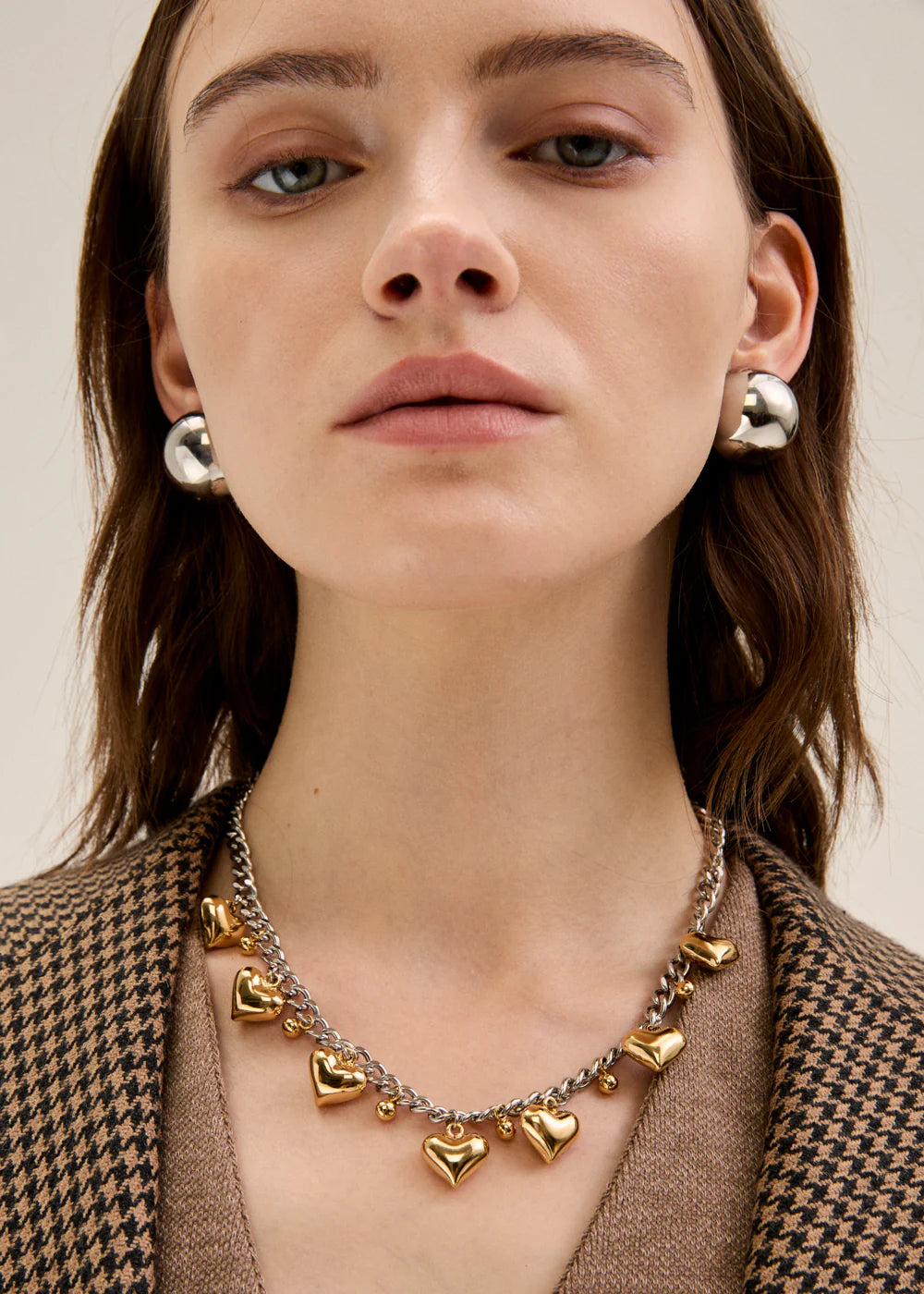 La collana da donna Nalì EMCL1015 unisce eleganza e modernità con i suoi cuori pendenti in acciaio inox, disponibili nelle raffinate tonalità oro e argento. Un accessorio versatile e sofisticato, perfetto per aggiungere un delicato tocco di classe a ogni outfit, dal giorno alla sera.