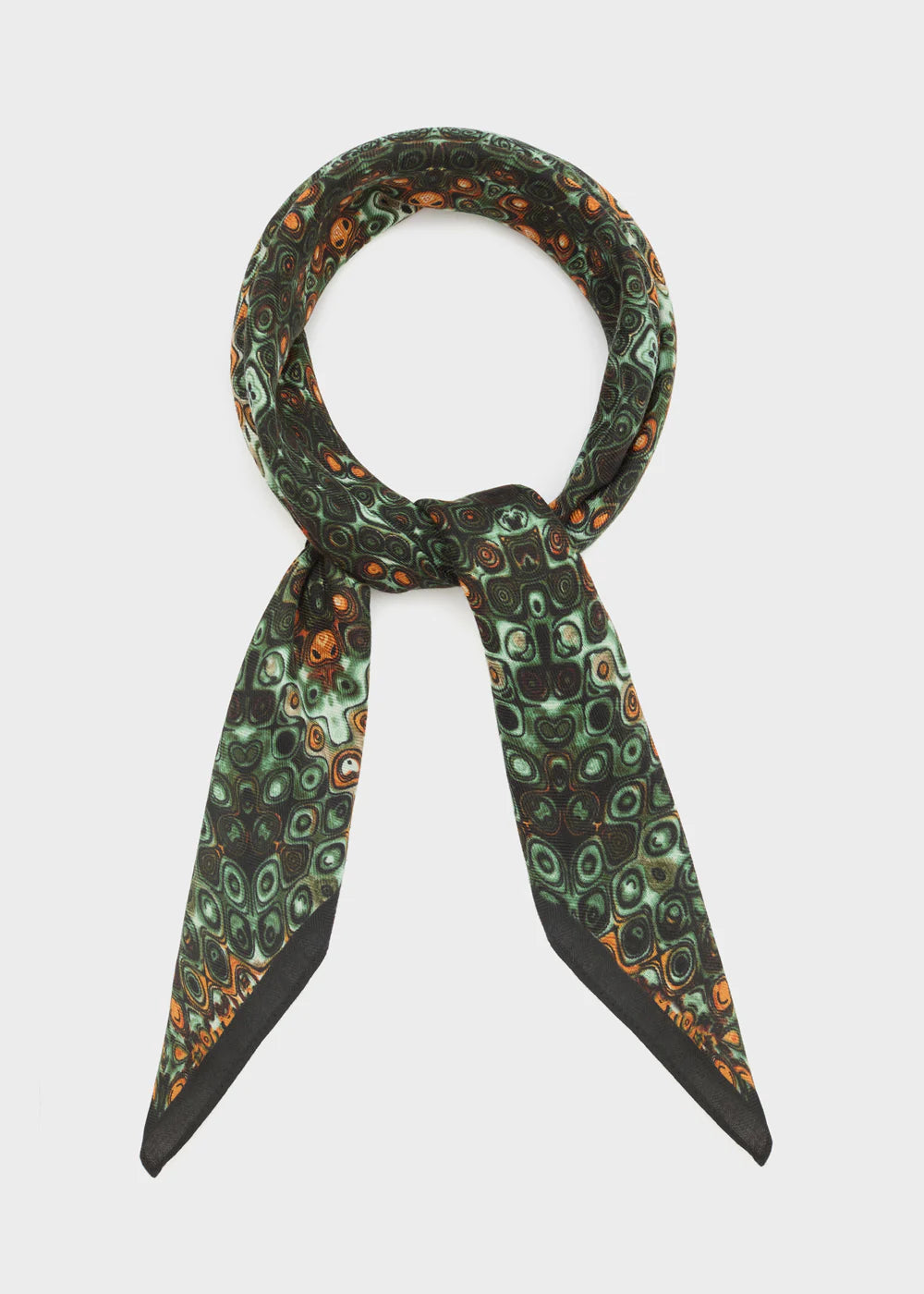 Il foulard da donna della linea Elisa firmato Nalì, caratterizzato da una raffinata fantasia e proposto in un elegante verde, è l’accessorio perfetto per aggiungere un tocco di classe e originalità ai tuoi outfit. Leggero e versatile, valorizza ogni look con sofisticatezza e stile contemporaneo.