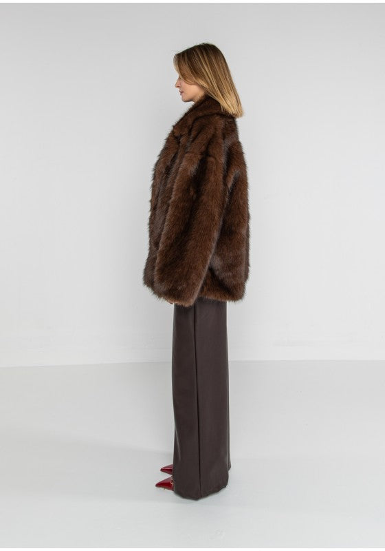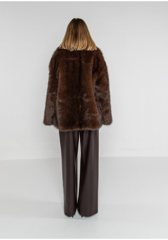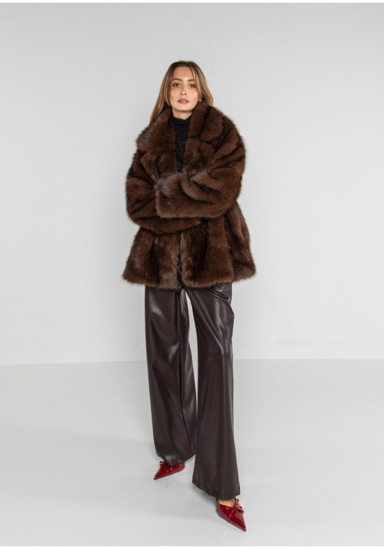 La pelliccia over da donna Lokita LOK8312 in eco pelliccia colore testa di moro esprime un'eleganza sostenibile senza tempo. Il design ampio e avvolgente garantisce comfort e calore, trasformando ogni outfit in un’icona di stile raffinato e consapevole.