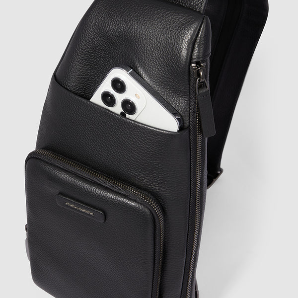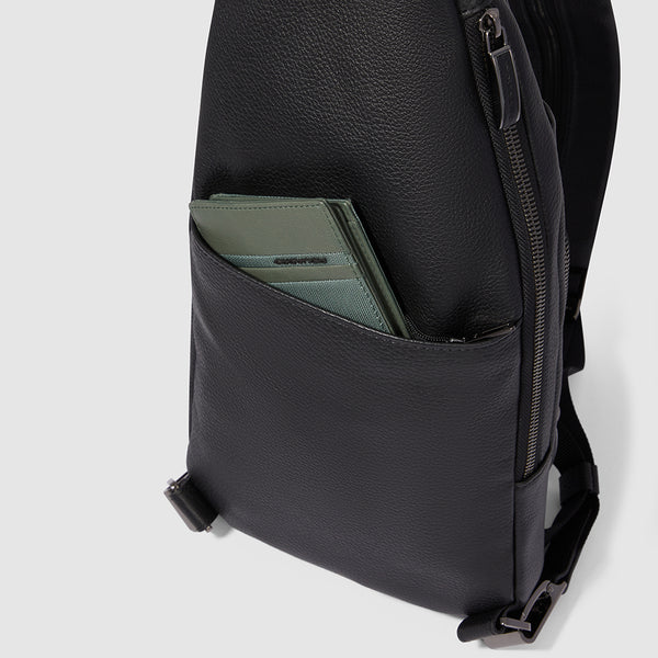 Il monospalla da uomo Piquadro in pelle nera unisce design raffinato e funzionalità pratiche. Realizzato con materiali di alta qualità, offre comfort e stile sofisticato per accompagnare l’uomo moderno nei suoi spostamenti quotidiani con eleganza e comodità.