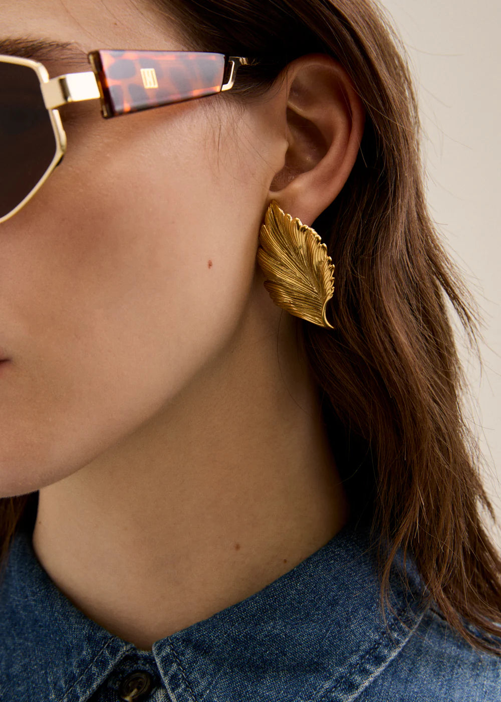 Gli orecchini da donna a forma di foglia in acciaio inox placcato oro firmati Nalì combinano eleganza e resistenza. Il design delicato e sofisticato dona un tocco di natura raffinata, perfetto per arricchire con classe qualsiasi outfit.