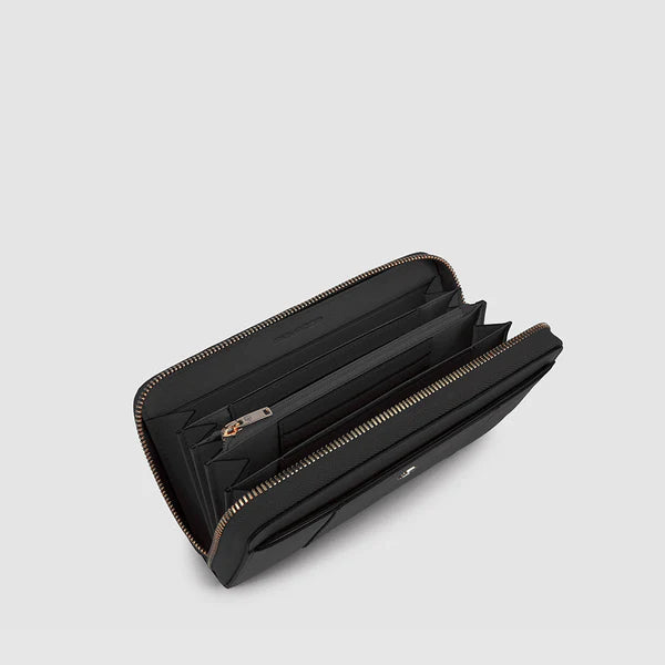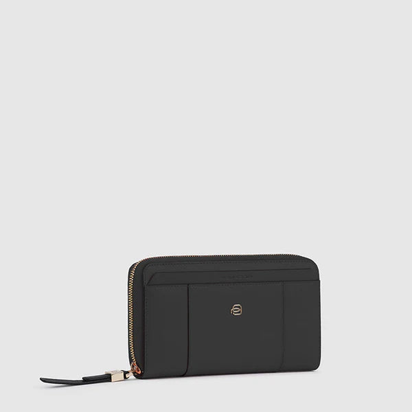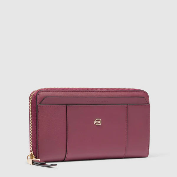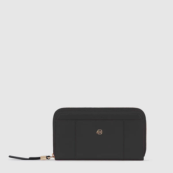 Il portafoglio donna Piquadro, realizzato in pelle pregiata, unisce eleganza e funzionalità grazie alla zip ampia che garantisce sicurezza e facile accesso. Disponibile nei raffinati colori blu, bordeaux, marrone/beige e nero, offre versatilità e stile impeccabile per ogni occasione, ideale per chi cerca un accessorio sofisticato e pratico.