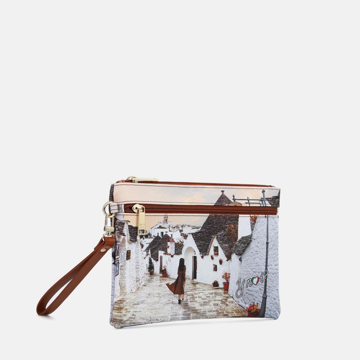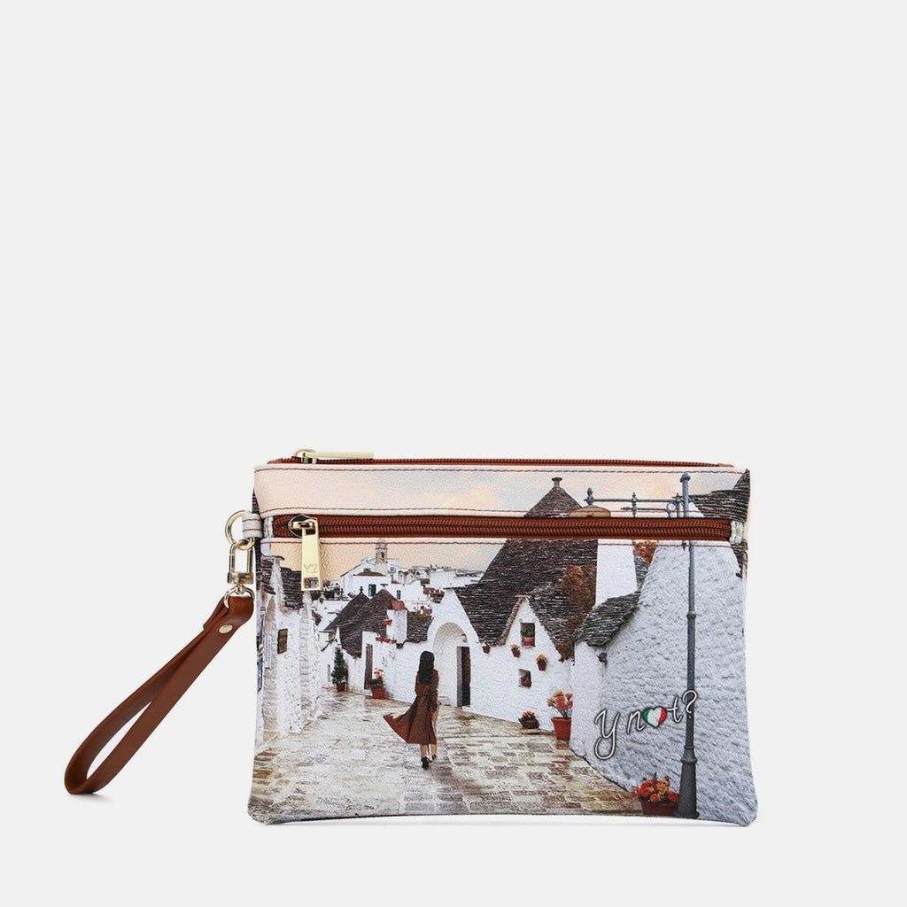 La pochette da donna Ynot? modello YES343F6, arricchita da stampe raffinate come Amsterdam Bridge, Jubilee, Kisses from Paris, Fall in Alberobello e London Bridge, è dotata di un elegante manico e di una tasca frontale funzionale. Un accessorio sofisticato e pratico, perfetto per completare con stile ogni look.