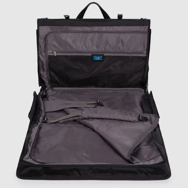 Il portabiti pieghevole da viaggio Piquadro PA4344BR2, realizzato in materiale resistente di colore nero, unisce praticità e stile elegante. Progettato per proteggere gli abiti durante gli spostamenti, si ripiega facilmente per garantire massima comodità e ingombro ridotto, ideale per il viaggiatore raffinato.