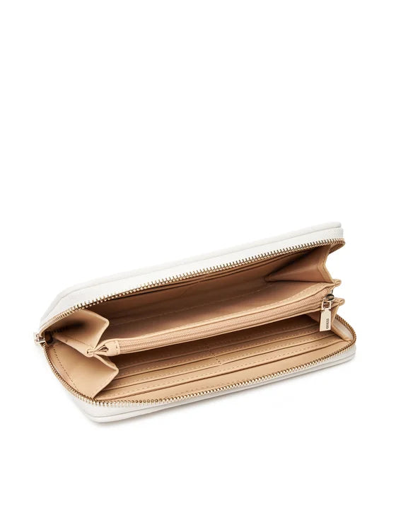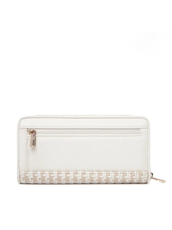 Il portafoglio grande da donna Guess SWWG9631146, nei raffinati colori nero e bianco, unisce eleganza e funzionalità. Dotato di zip, tasca esterna e pratico manico, offre sicurezza e facile accesso agli oggetti essenziali, rappresentando un accessorio sofisticato ideale per ogni occasione.
