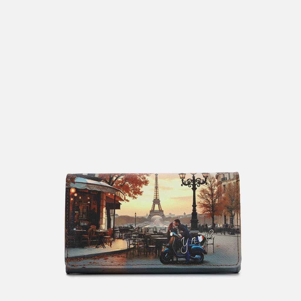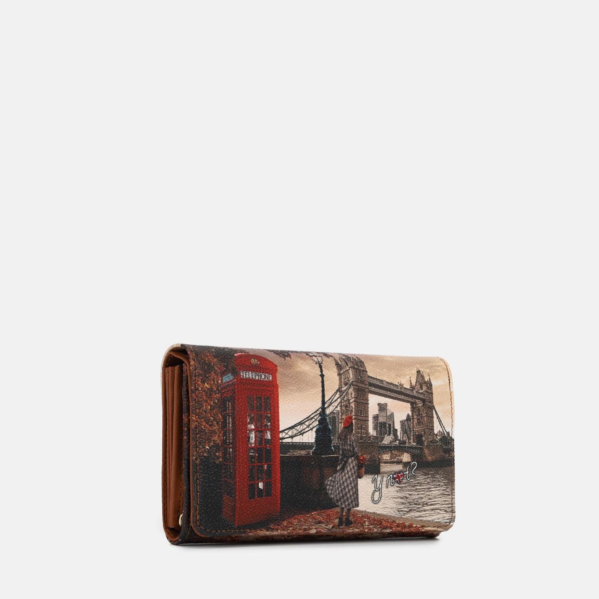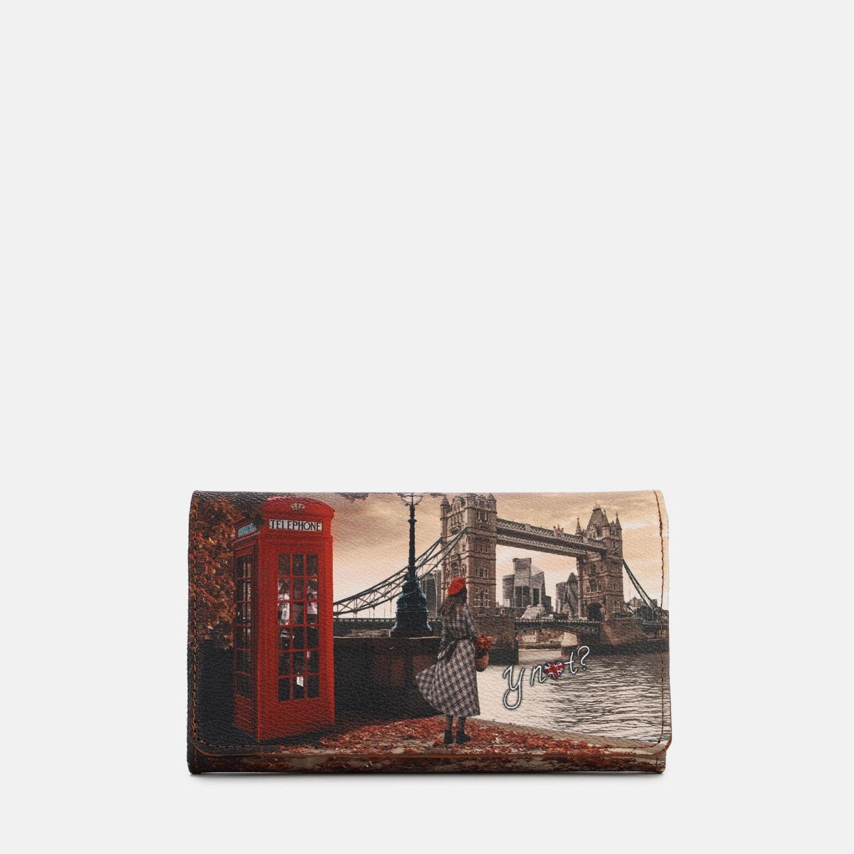 Il portafoglio grande da donna Ynot? modello YES364F6 è impreziosito da stampe raffinate che rappresentano Amsterdam Bridge, Astro Clock, Jubilee, Kisses from Paris, Fall in Alberobello e London Bridge. Dotato di patta, unisce eleganza e funzionalità, offrendo ampio spazio e un’organizzazione ottimale per le esigenze quotidiane con uno stile sofisticato e distintivo.