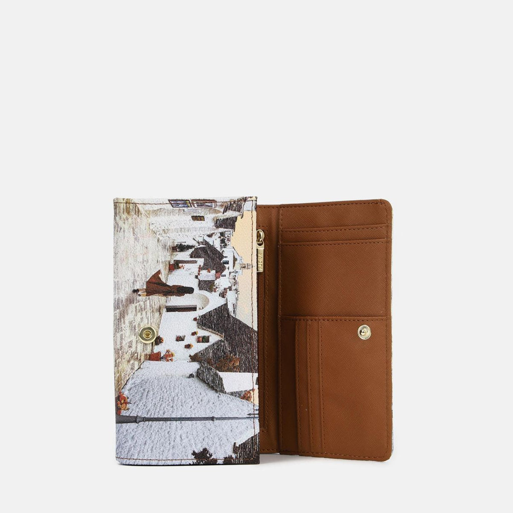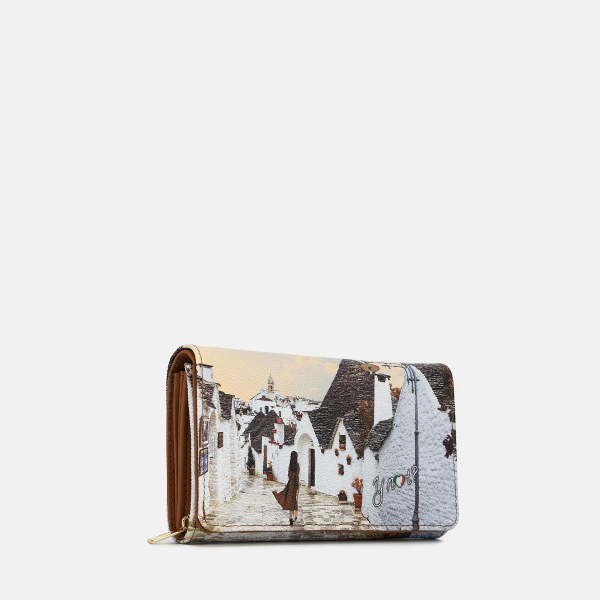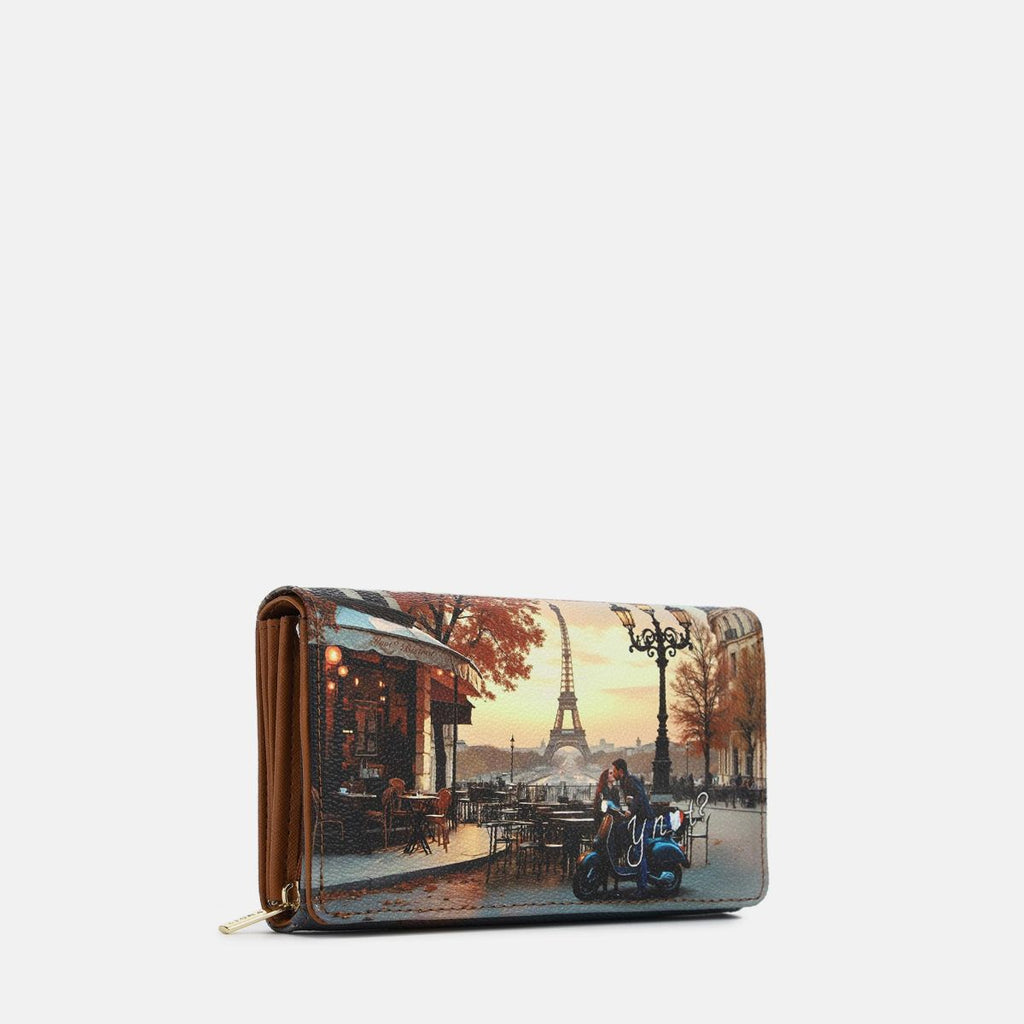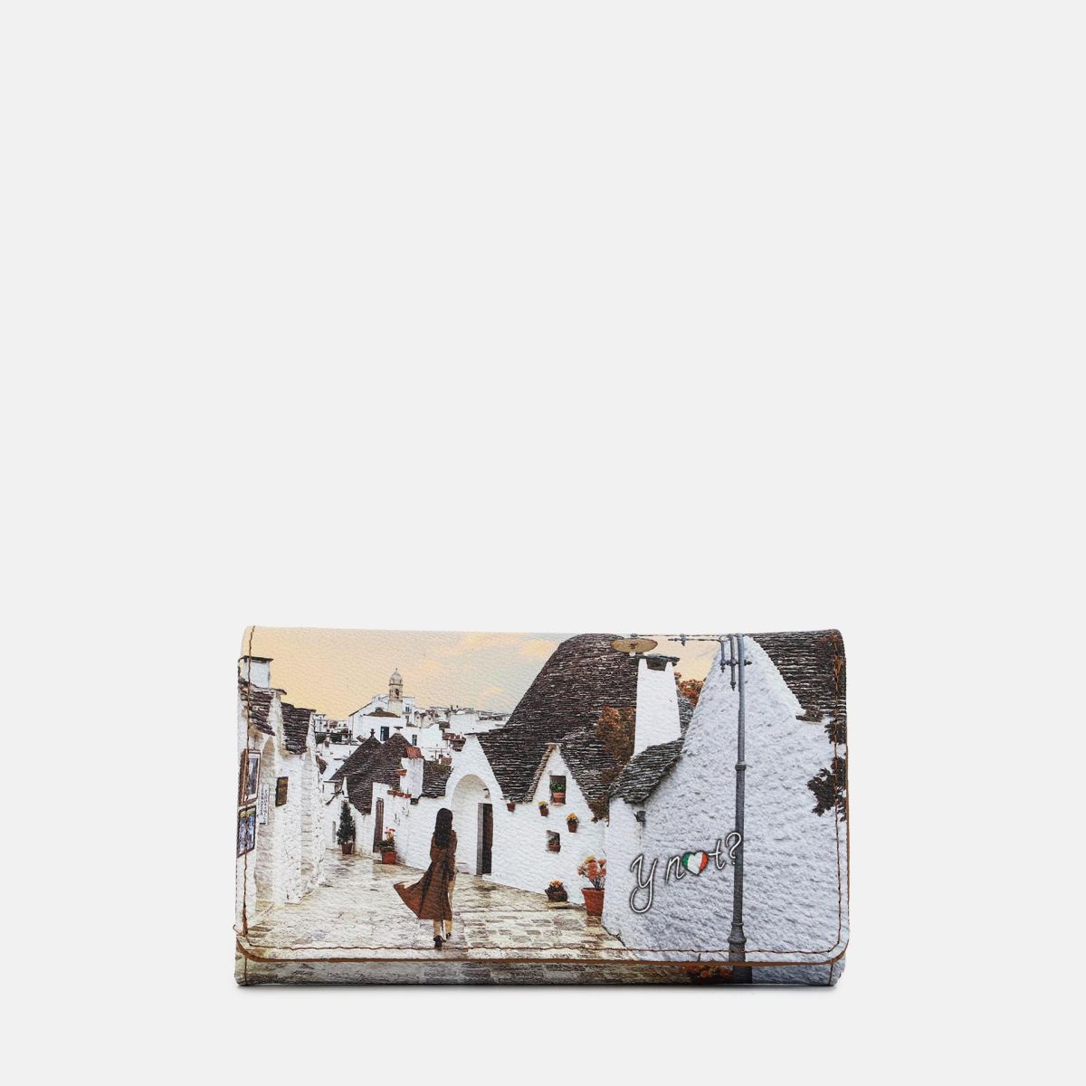 Il portafoglio grande da donna Ynot? modello YES364F6 è impreziosito da stampe raffinate che rappresentano Amsterdam Bridge, Astro Clock, Jubilee, Kisses from Paris, Fall in Alberobello e London Bridge. Dotato di patta, unisce eleganza e funzionalità, offrendo ampio spazio e un’organizzazione ottimale per le esigenze quotidiane con uno stile sofisticato e distintivo.