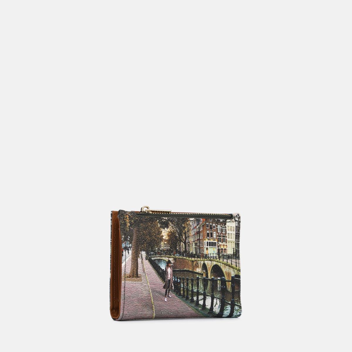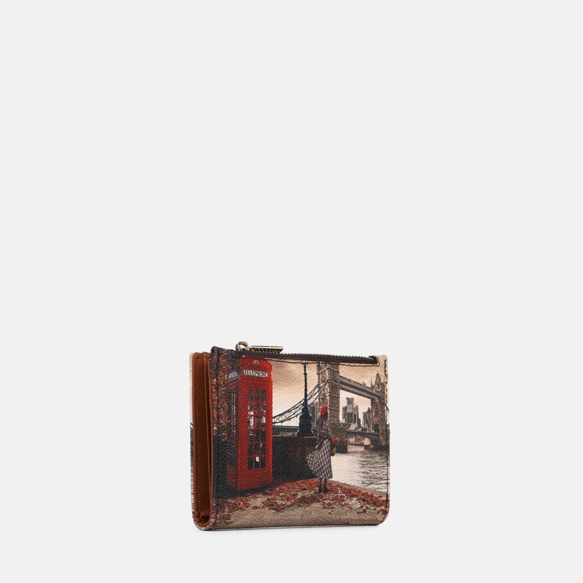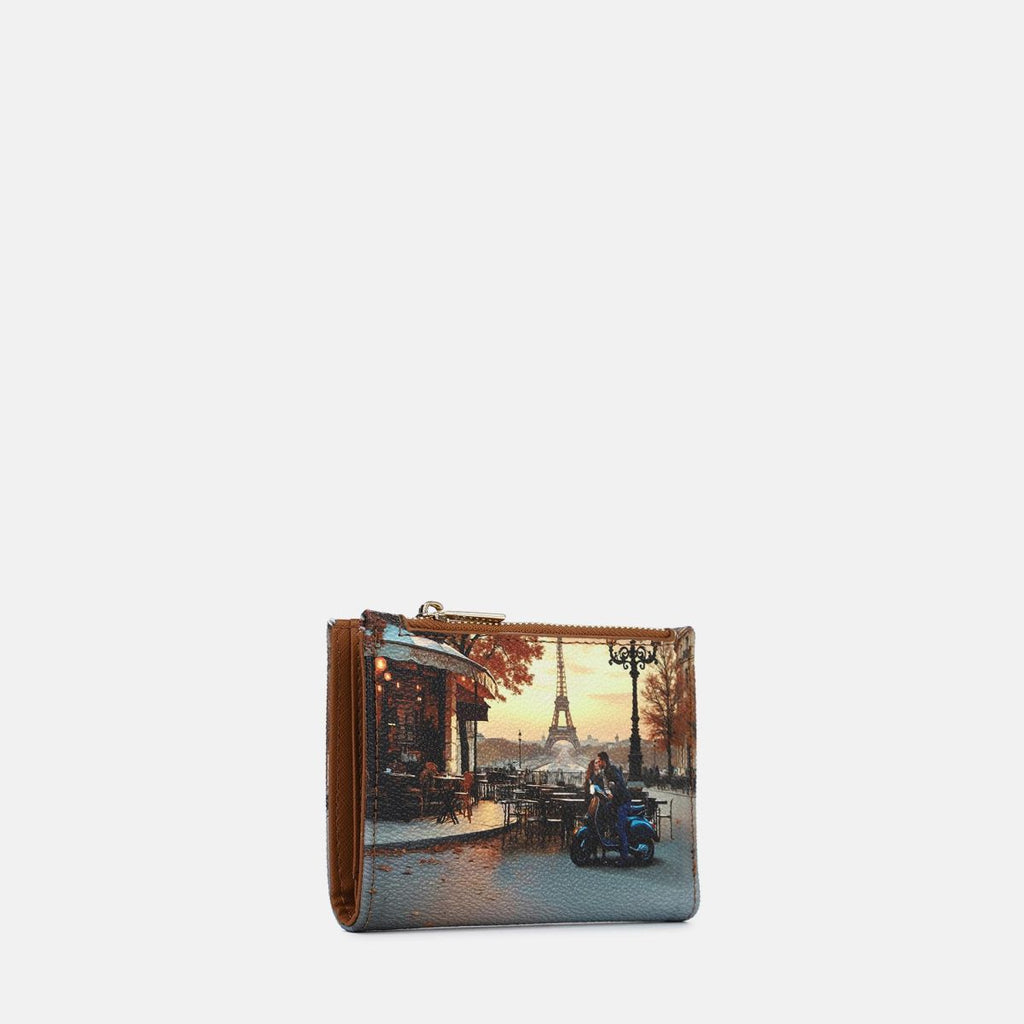 Il portafoglio medio da donna Ynot?, impreziosito da stampe esclusive come Amsterdam Bridge, Astro Clock, Jubilee, Kisses from Paris, Fall in Alberobello e London Bridge, unisce eleganza e praticità. Dotato di patta e zip, offre una perfetta organizzazione degli spazi, rappresentando un accessorio sofisticato e funzionale per la quotidianità.