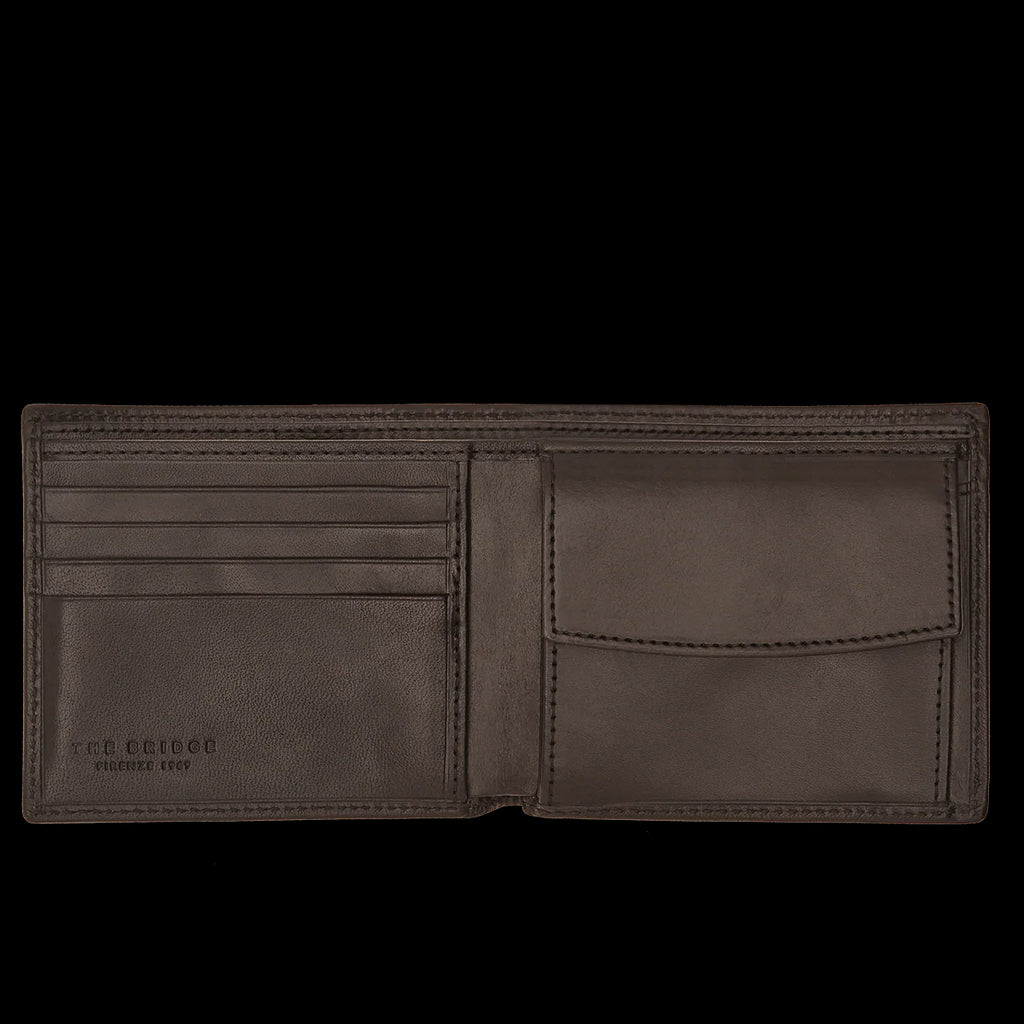 Portafoglio in pelle di qualità superiore firmato The Bridge, il marchio italiano sinonimo di artigianalità e eleganza. Realizzato in pelle marrone dalle tonalità calde e naturali, questo accessorio combina funzionalità e stile senza compromessi. Dotato di scomparti organizzati per carte di credito, banconote e monete, garantisce praticità nella gestione quotidiana. La lavorazione meticolosa e i materiali nobili lo rendono un compagno affidabile che migliora con il tempo, sviluppando una patina caratteristica. Un investimento in stile per l'uomo che apprezza la qualità autentica.