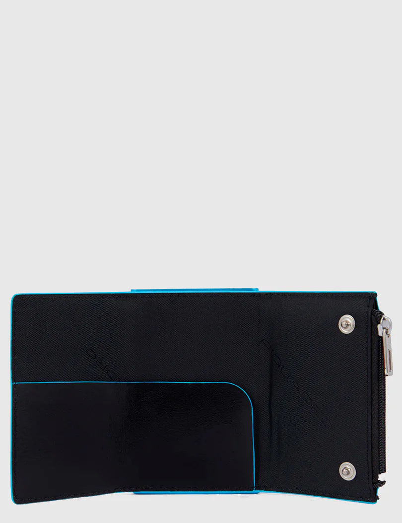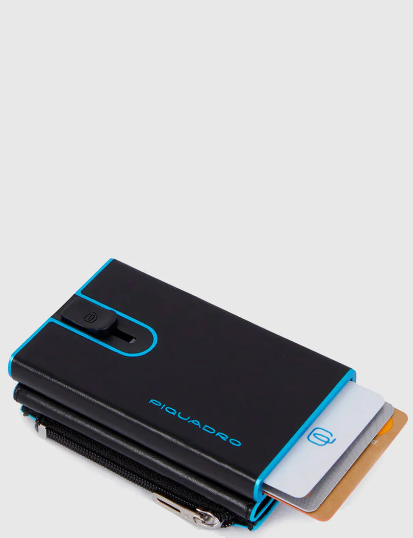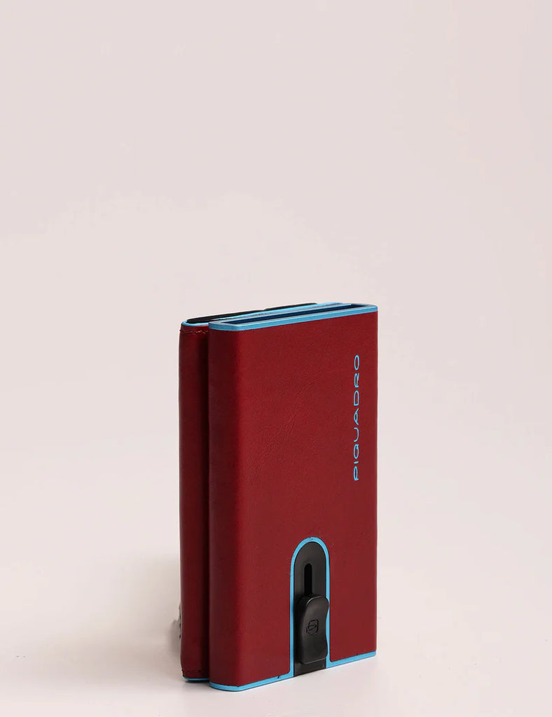 Il portacarte automatico da uomo Piquadro con zip portamonete unisce eleganza e funzionalità in un design raffinato. Disponibile nei colori rosso, nero, mogano e blu, è realizzato con materiali di alta qualità che garantiscono durata e stile. La chiusura zip assicura sicurezza per le monete, mentre l’apertura automatica consente un accesso rapido e ordinato alle carte, ideale per chi cerca praticità senza rinunciare alla classe.