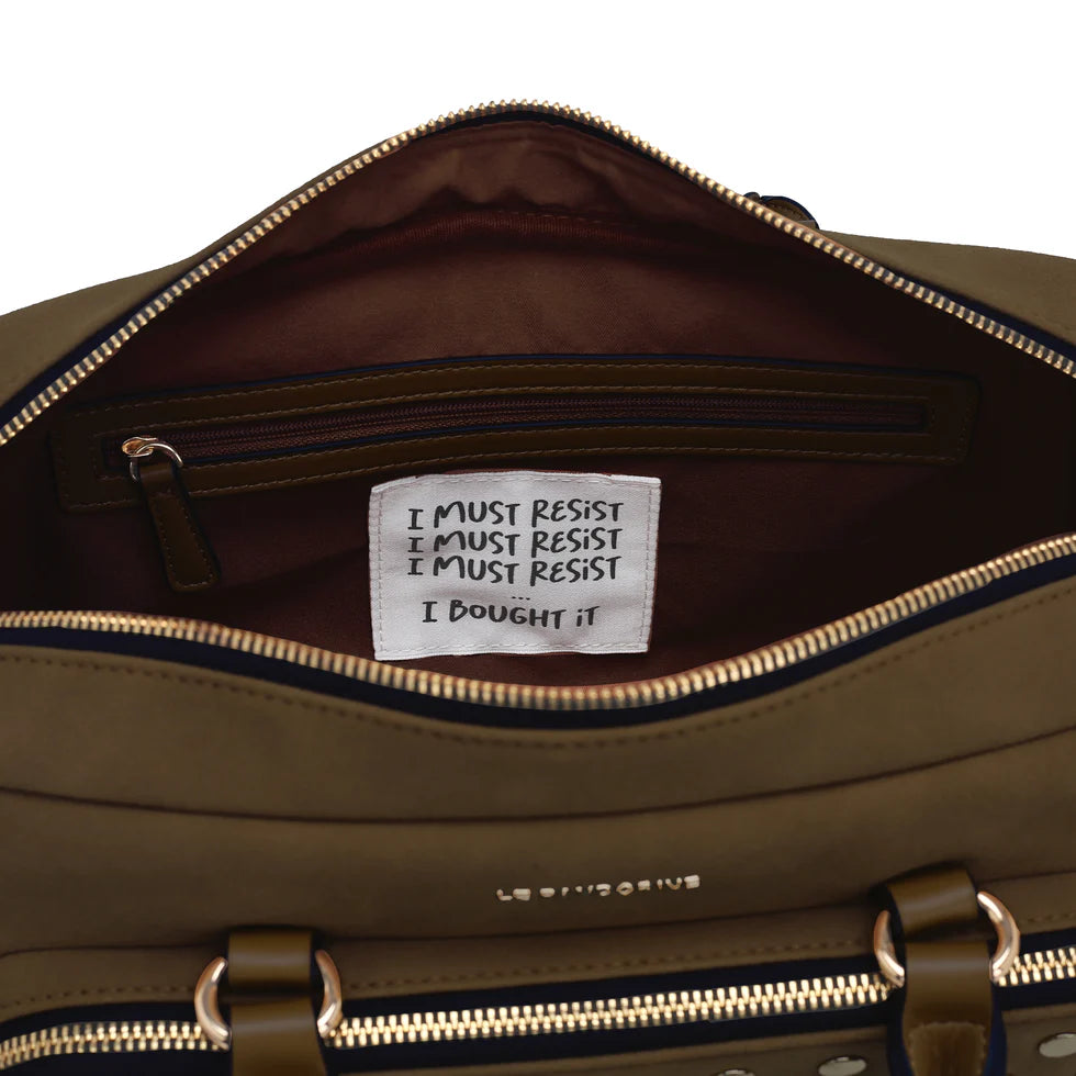 Elegante borsa a mano Le Pandorine, ideale per donne moderne e raffinate. Realizzata con materiali di alta qualità, presenta una tasca esterna pratica per un accesso rapido agli oggetti essenziali. Disponibile nei sofisticati colori verde militare e nero, questa borsa combina funzionalità e stile, completando con classe ogni tuo outfit.