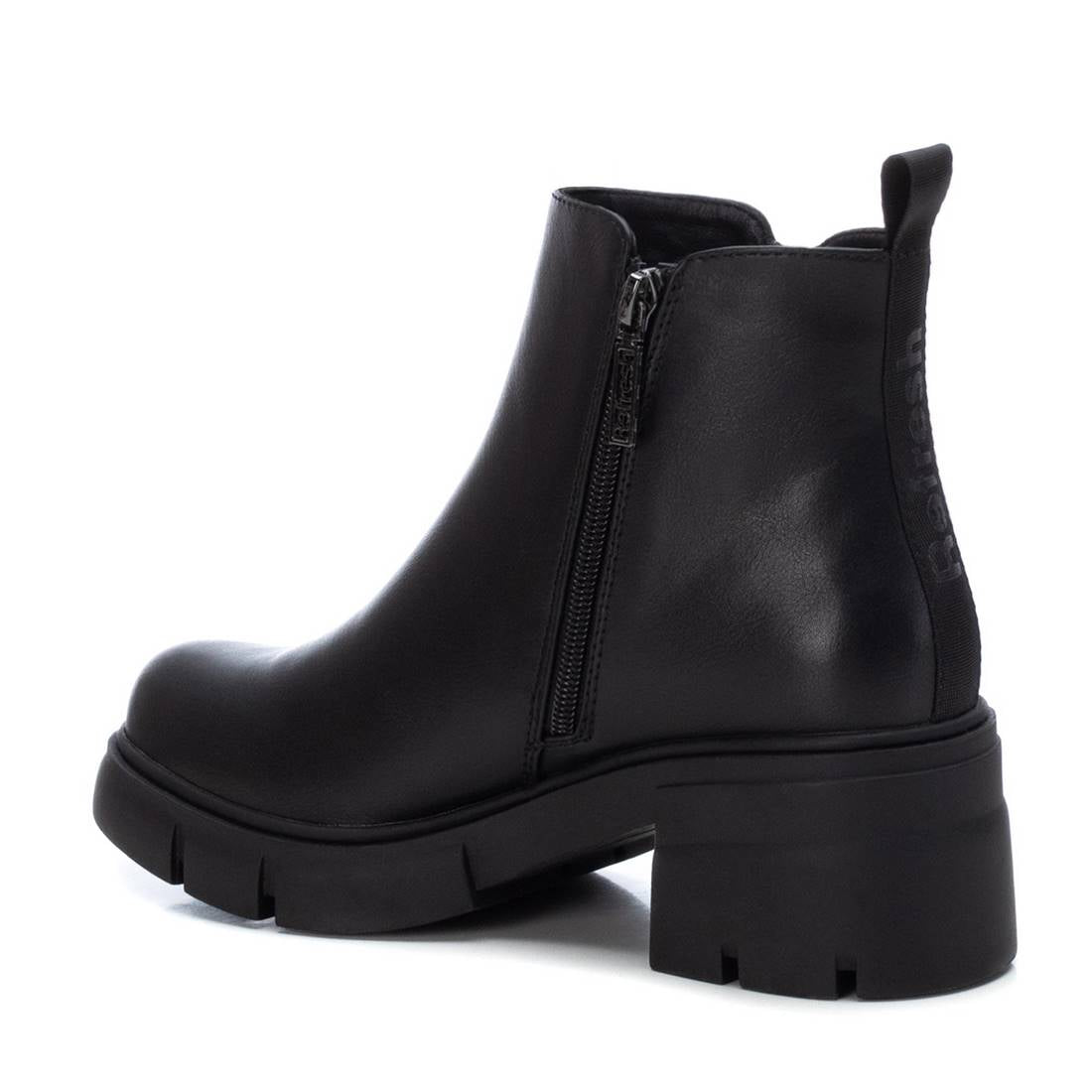 Stivaletto da donna Refresh in nero, caratterizzato da un tacco basso che assicura comfort e stile sofisticato. Questo modello versatile si adatta perfettamente a ogni outfit, offrendo una silhouette elegante e una calzata confortevole per l’uso quotidiano.