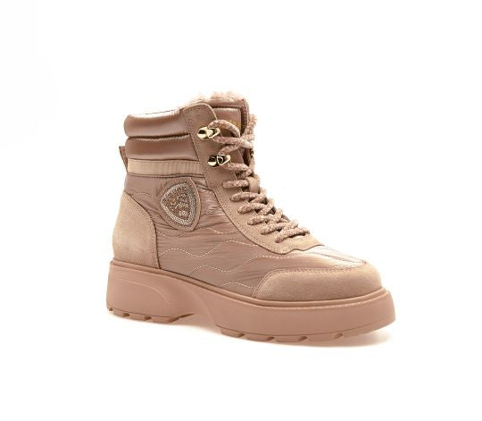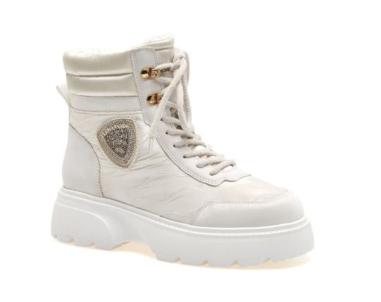 Gli scarponcini da donna Blauer, disponibili nei delicati colori bianco e beige, si distinguono per la suola alta che unisce comfort e una silhouette moderna. Realizzati con materiali di qualità, offrono un look sofisticato e funzionale, ideali per chi cerca unire stile ricercato e praticità nella vita quotidiana.