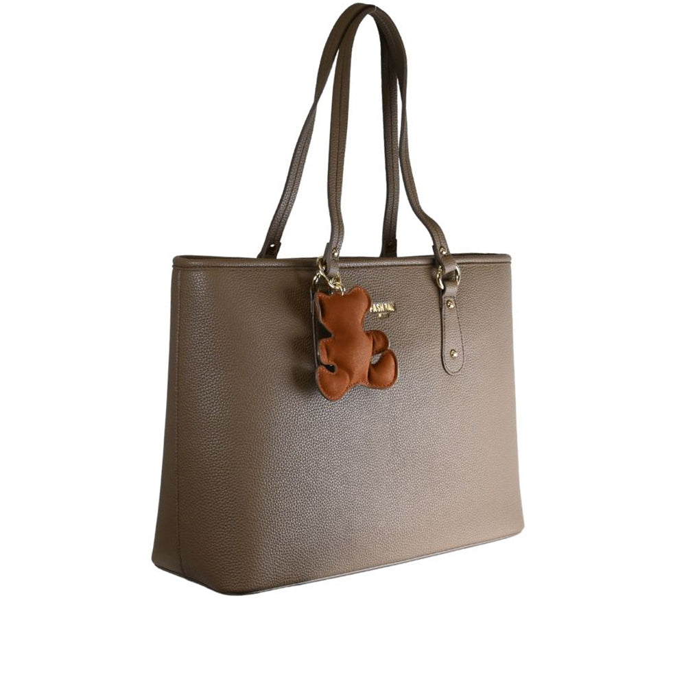 Shopping bag Janine di Pashbag, elegante soluzione per le tue esigenze quotidiane in tortora. Questo accessorio spazioso racchiude un design contemporaneo e versatile, perfetto per accompagnare il tuo stile in ogni circostanza. La tonalità neutra e sofisticata si abbina facilmente a qualsiasi outfit, mentre la struttura ben definita assicura praticità e durabilità. Un complemento essenziale che unisce capacità funzionale con discreta eleganza.