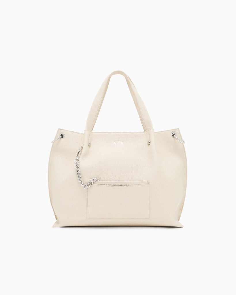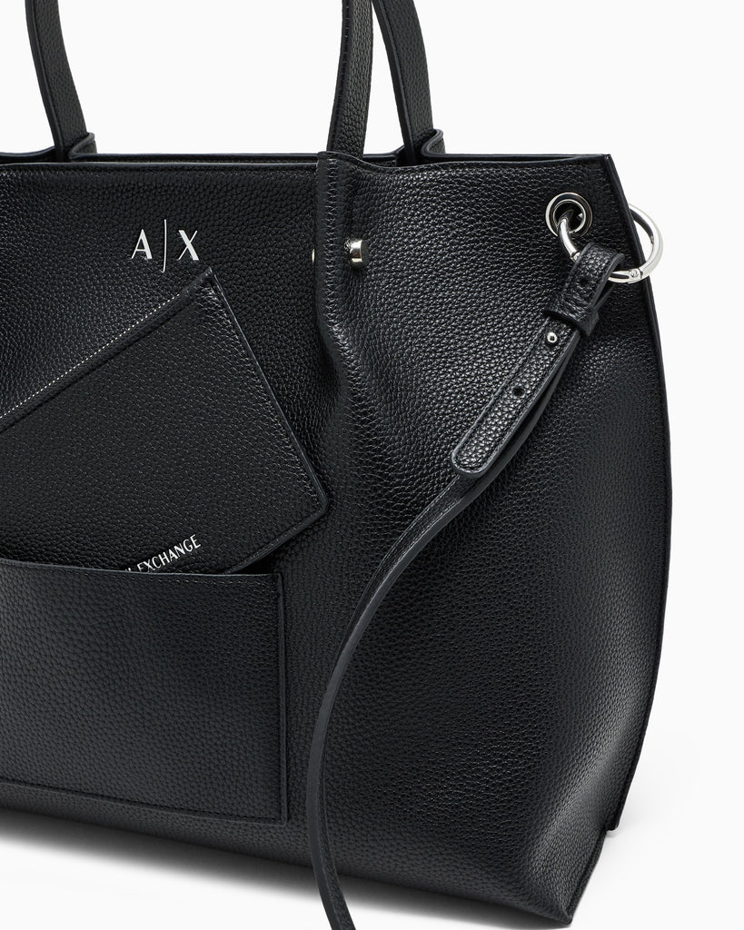 Shopping bag donna Armani Exchange disponibile nei toni classici di nero e beige. Completa di piccola pochette removibile per organizzare gli essenziali con stile. Capiente e versatile, si adatta perfettamente a ogni occasione, dalla spesa quotidiana agli impegni professionali. Realizzata con materiali robusti e raffinati, incarna l'eleganza senza tempo del marchio. Un investimento in praticità e sofisticatezza.