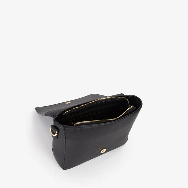 La tracolla da donna della linea Foxy Re di Valentino, in elegante nero, unisce design raffinato e funzionalità. Dotata di patta, offre un accesso sicuro e pratico ai tuoi oggetti personali, valorizzando ogni outfit con un tocco di classe e sofisticatezza senza tempo.