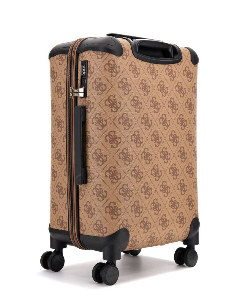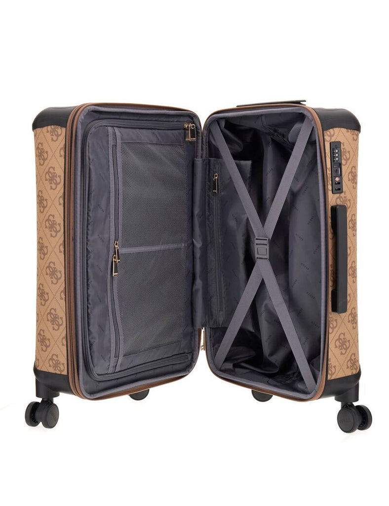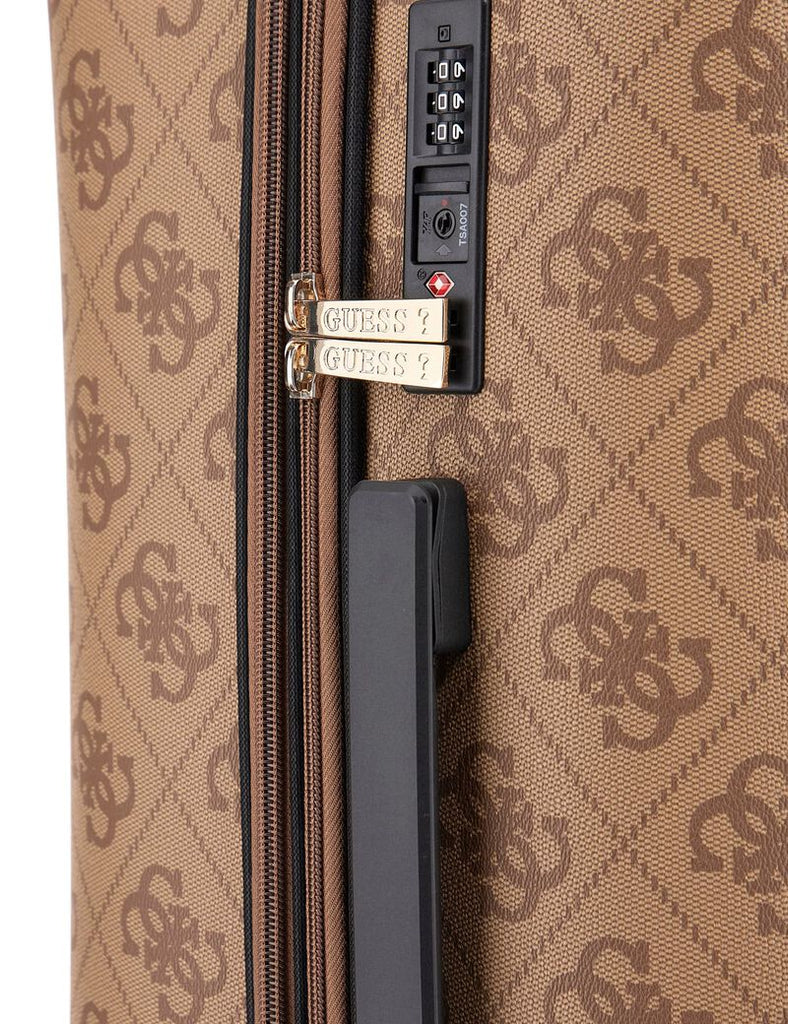 Il trolley grande Guess TWOB8688982 si distingue per la sua struttura rigida che garantisce resistenza e protezione ottimale. Nei delicati colori rosa e beige/marrone, combina funzionalità e stile sofisticato, ideale per viaggi lunghi con eleganza e sicurezza.