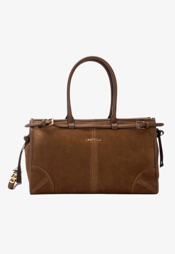 Elegante borsa a spalla da donna firmata Carmela, realizzata in morbido suede color kaki. Questo accessorio raffinato unisce stile e funzionalità, ideale per completare con classe i tuoi outfit quotidiani. La tonalità versatile e la texture pregiata rendono questa borsa la scelta perfetta per chi cerca un tocco sofisticato senza rinunciare alla praticità.