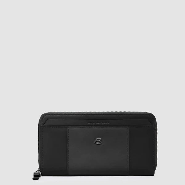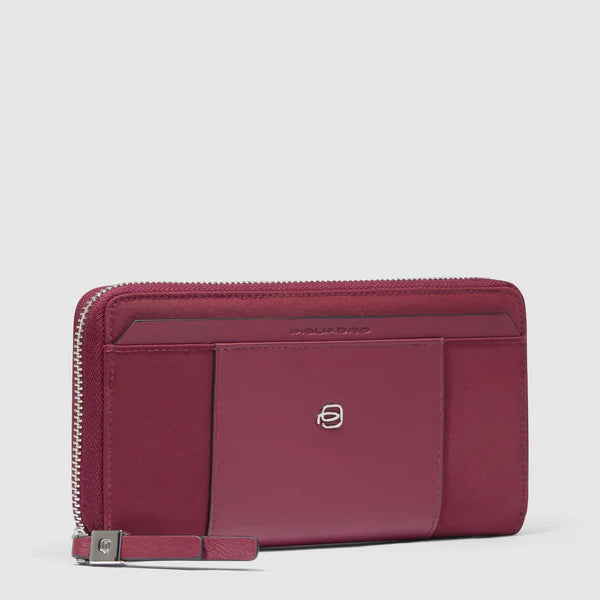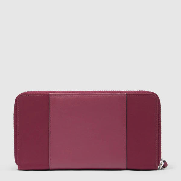 Portafoglio grande da donna Piquadro, disponibile nei raffinati colori bordeaux e nero. Dotato di chiusura con zip, combina eleganza e praticità offrendo ampio spazio per organizzare carte, contanti e documenti con stile sofisticato e cura dei dettagli.