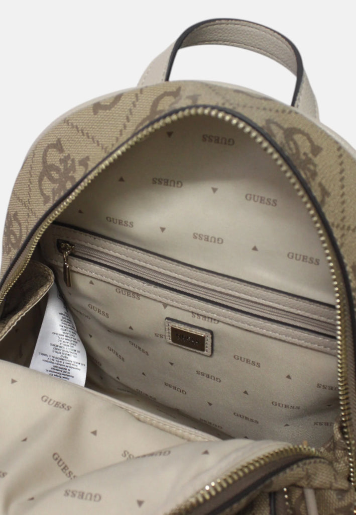 Zaino da donna Guess della linea Manhattan, disponibile nei raffinati colori nero e beige, caratterizzato da una tasca frontale che unisce praticità ed eleganza. Un accessorio versatile e sofisticato, perfetto per completare con stile ogni look contemporaneo.