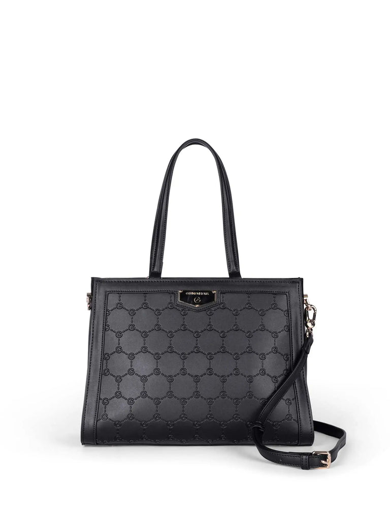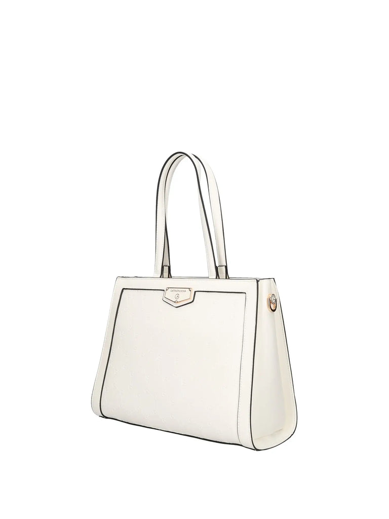 Borsa a spalla da donna firmata Gattinoni Roma, caratterizzata da doppio manico e tracolla per una versatilità elegante. Disponibile nei colori nero e ghiaccio, questo accessorio combina design raffinato e funzionalità, perfetto per completare con stile ogni outfit sofisticato.