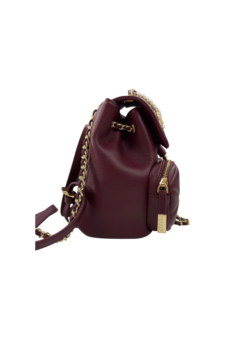 Lo zaino donna Gaelle unisce eleganza e funzionalità con il suo design raffinato e due pratiche tasche frontali. Disponibile in bordeaux e nero, è impreziosito da charms pendenti distintivi del marchio, per un tocco di classe in ogni occasione. Perfetto per chi cerca uno stile sofisticato senza rinunciare alla comodità.