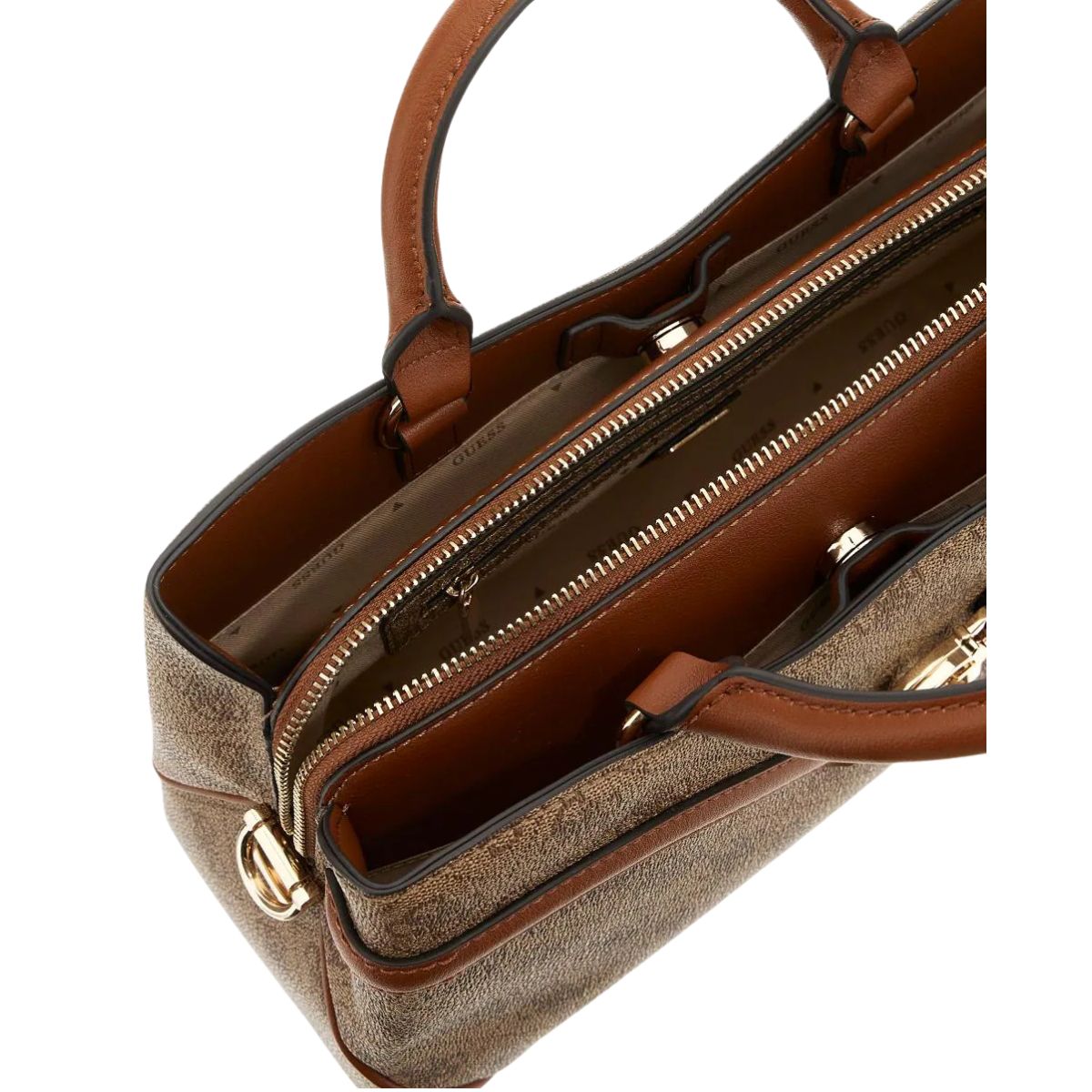 Borsa a mano da donna Guess che combina eleganza senza compromessi. Disponibile nei toni sofisticati di beige e nero, questo accessorio versatile è dotato di tracolla inclusa per adattarsi a ogni esigenza. Realizzata con materiali di qualità superiore, la borsa presenta il design distintivo Guess che garantisce riconoscibilità e stile. Perfetta sia per occasioni formali che per l'uso quotidiano, offre spazi funzionali e una silhouette raffinata che completa qualsiasi guardaroba con classe e distinzione.