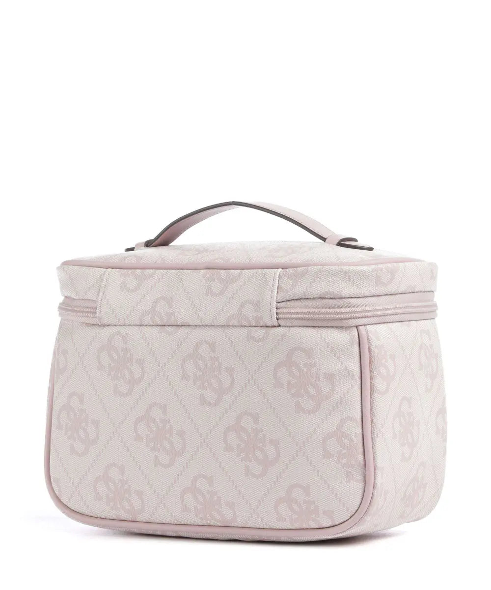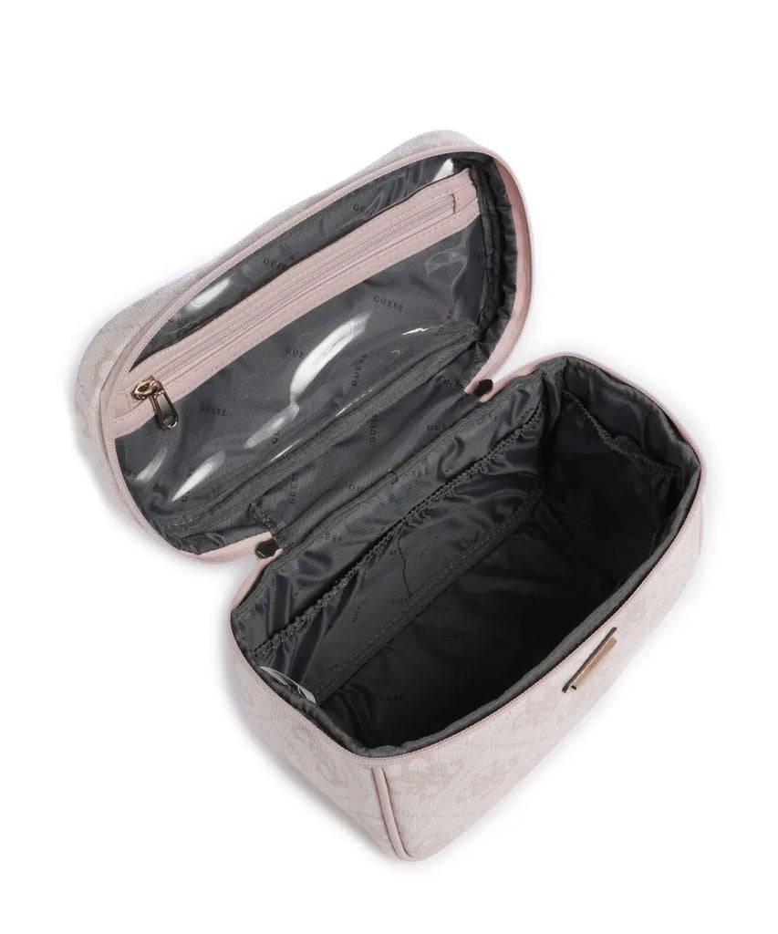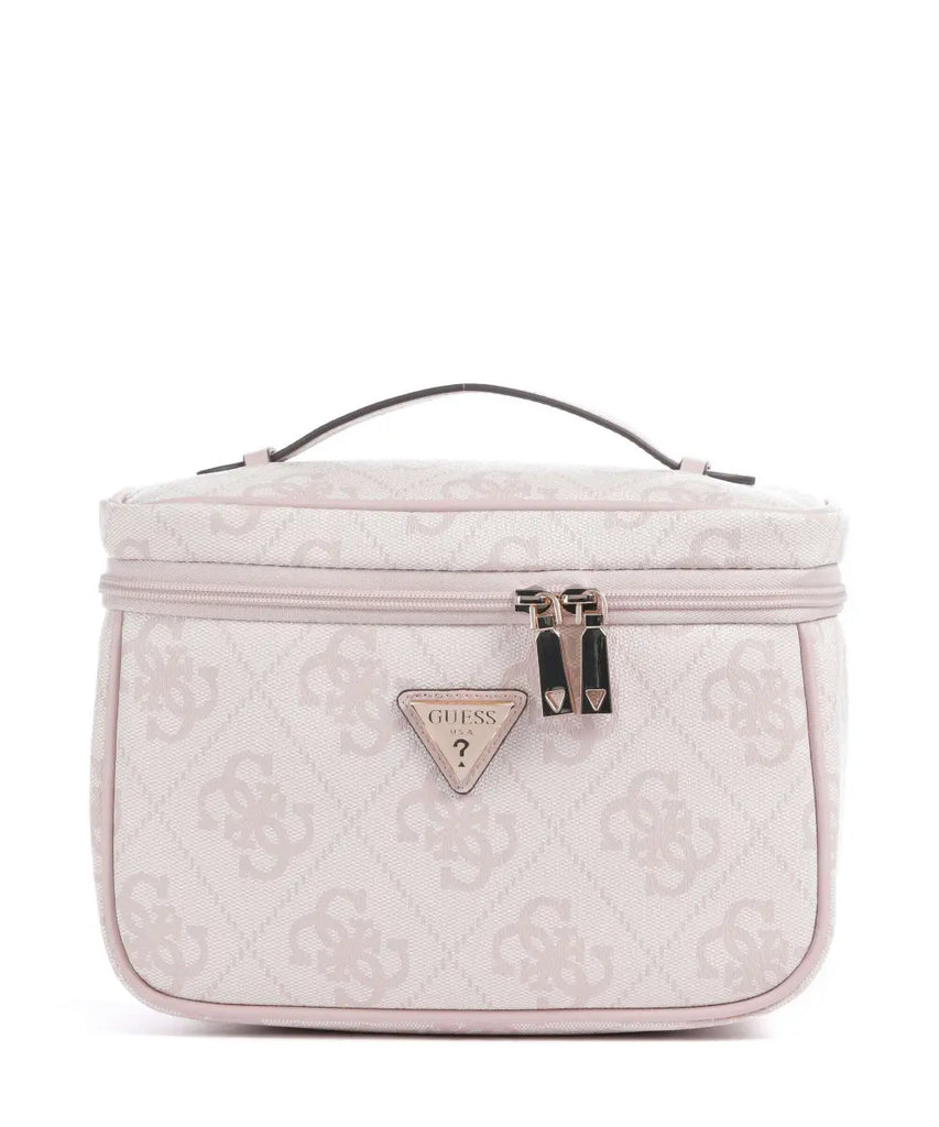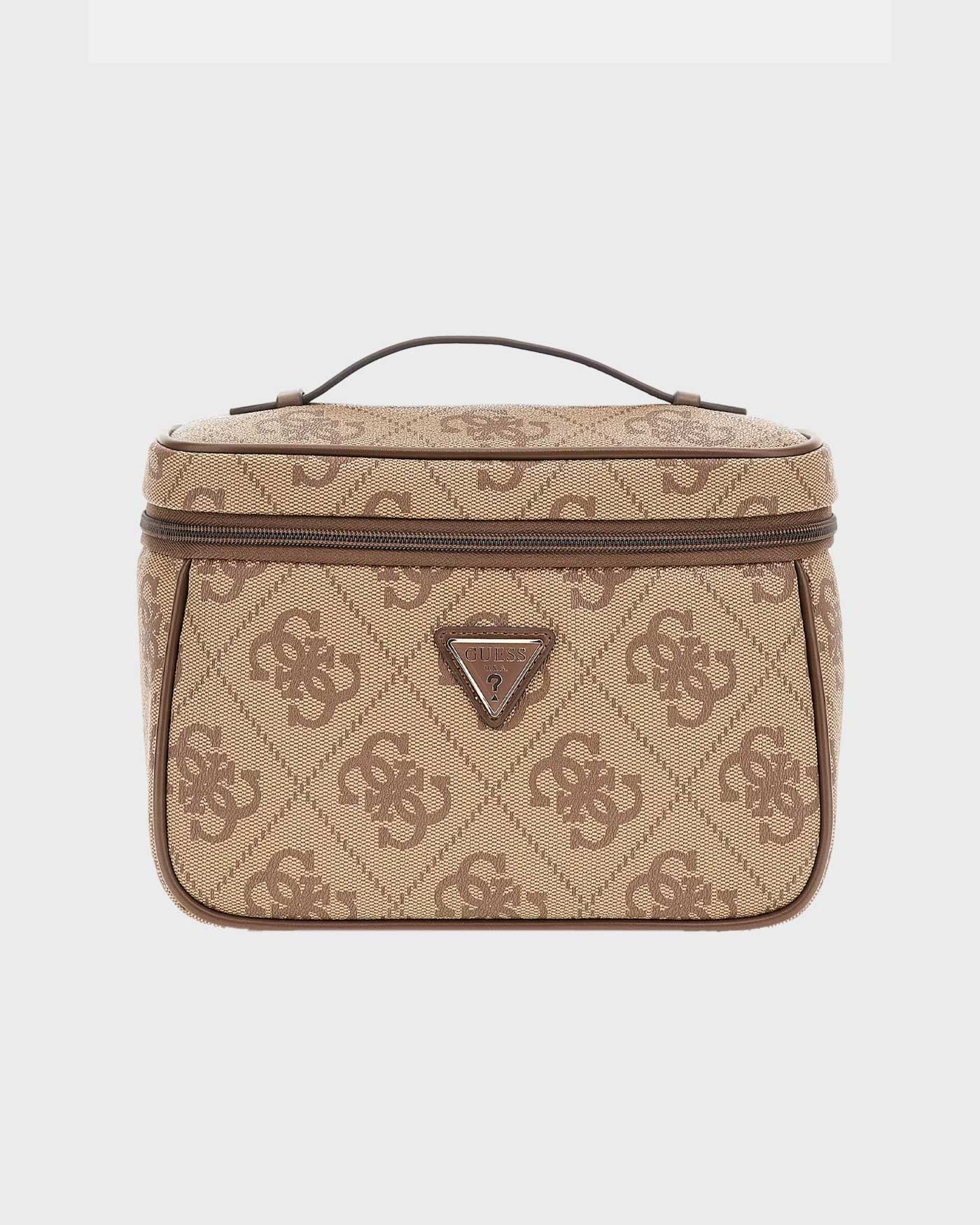 Beauty case da donna Guess, disponibile nei delicati colori beige e panna. Elegante e funzionale, è progettato per organizzare con stile i tuoi prodotti di bellezza, rendendo ogni viaggio o routine quotidiana un’esperienza raffinata e ordinata.