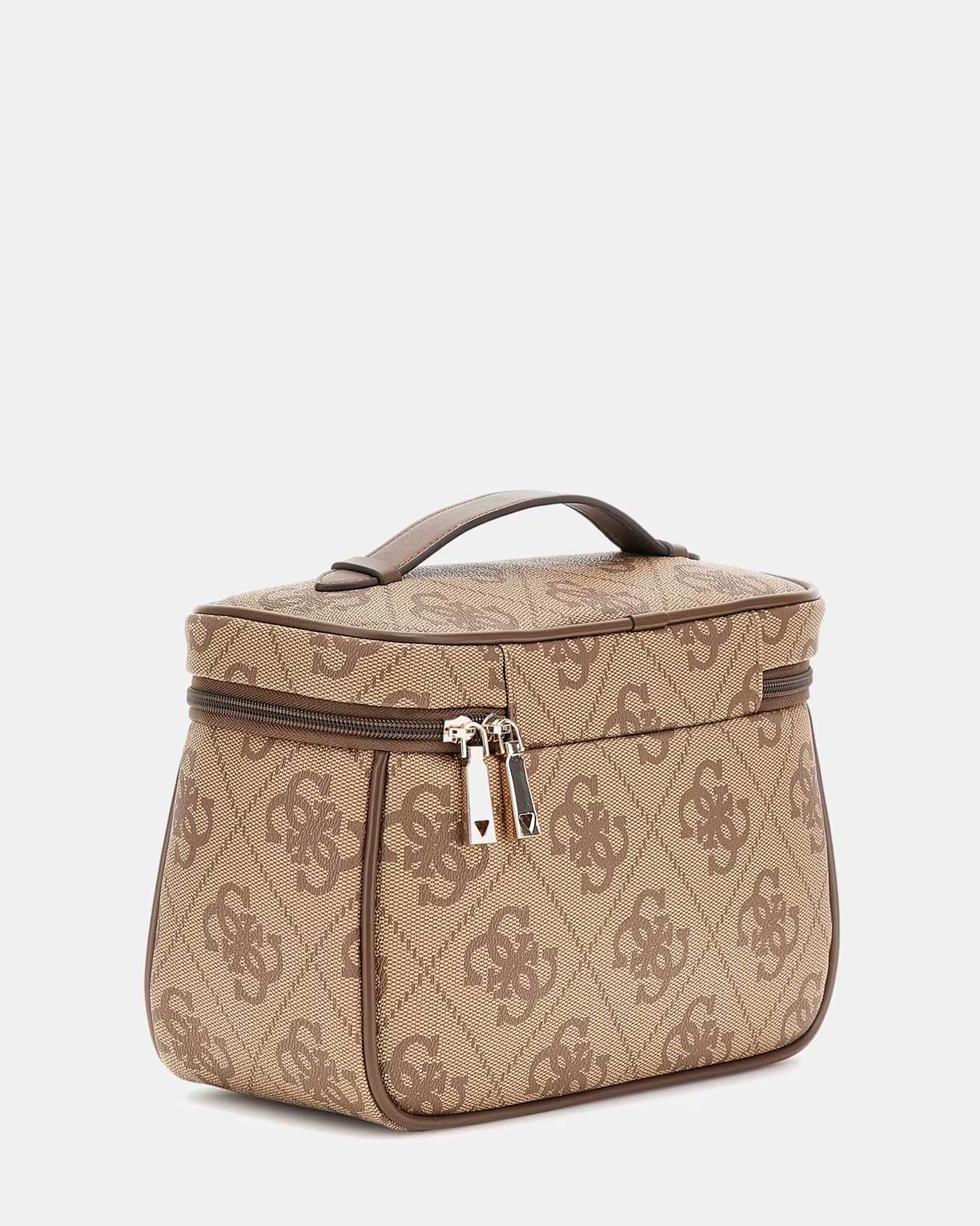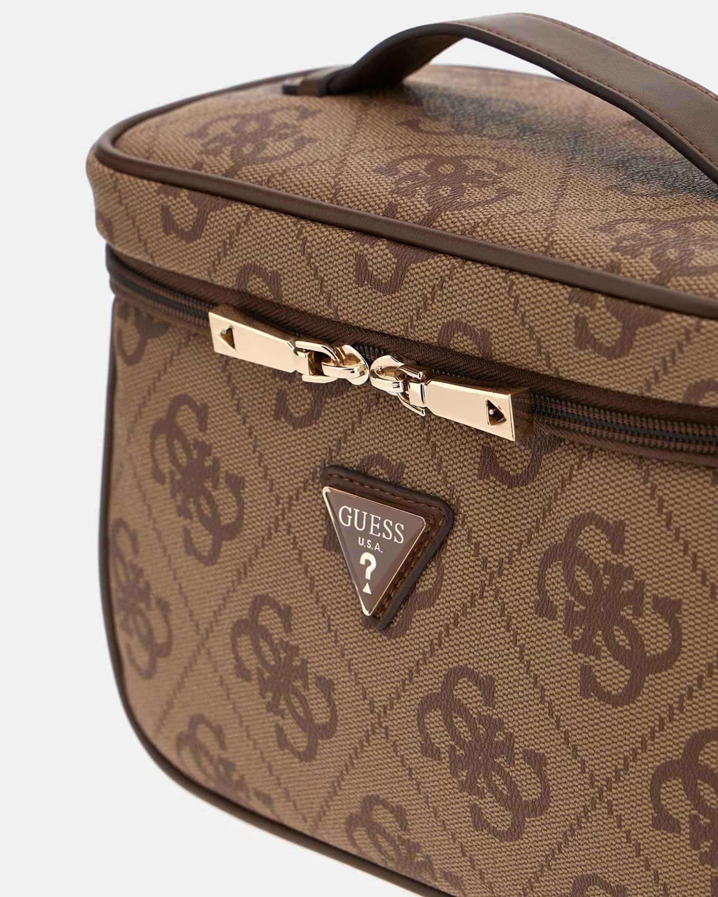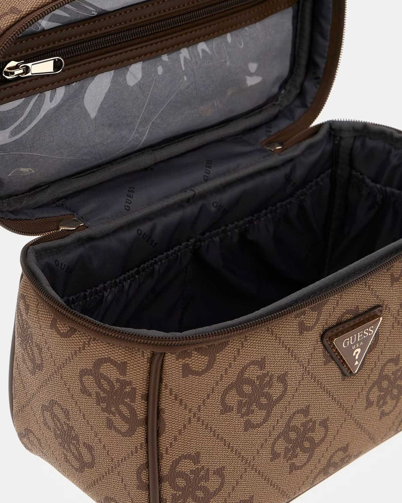 Beauty case da donna Guess, disponibile nei delicati colori beige e panna. Elegante e funzionale, è progettato per organizzare con stile i tuoi prodotti di bellezza, rendendo ogni viaggio o routine quotidiana un’esperienza raffinata e ordinata.